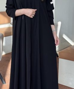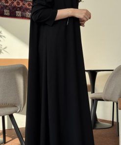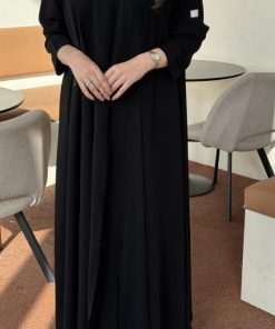 عبايات بيست – عباية عملية بتطريز على الكم باللون الاسود