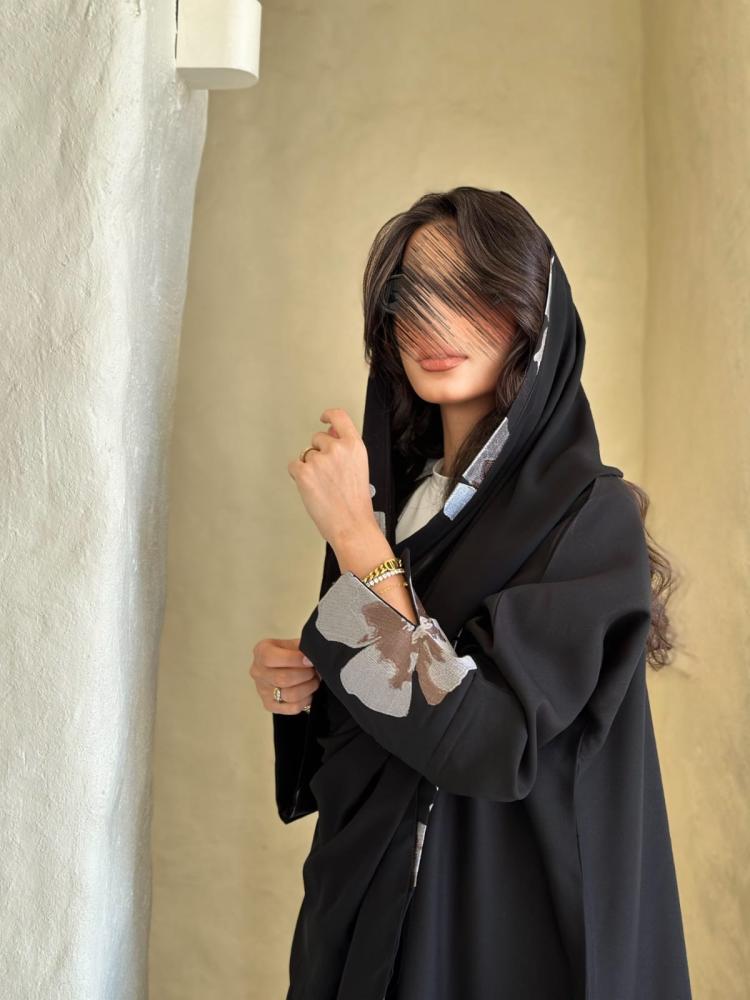 عبايات بيست – عباية عملية بتطريز على الكم باللون الاسود