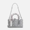 أوبرا فاشن – شنطة يد فاخرة ماركة كريسبلا مطرزة بنقوش بارزة باللون رصاصي