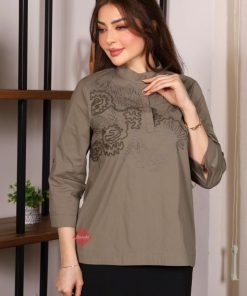 بلوزة أنيقة ستايل نص كم مع تطريز وردة