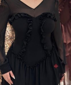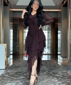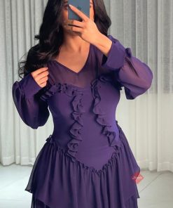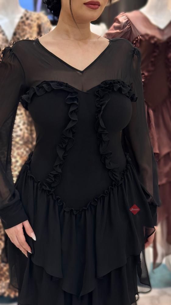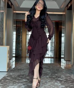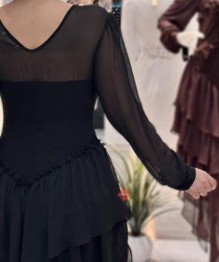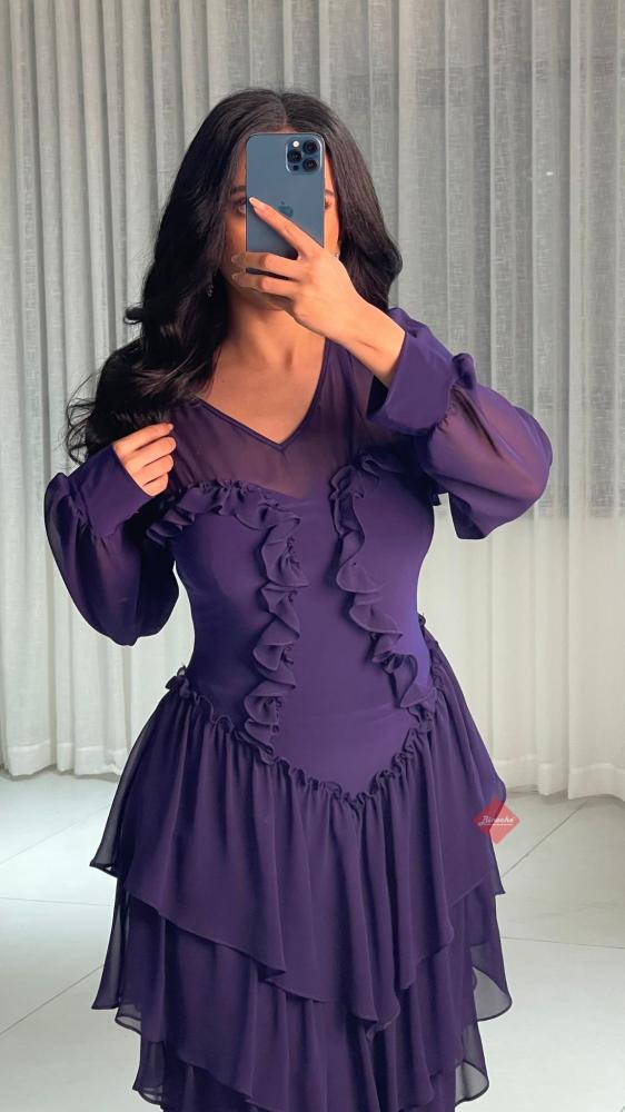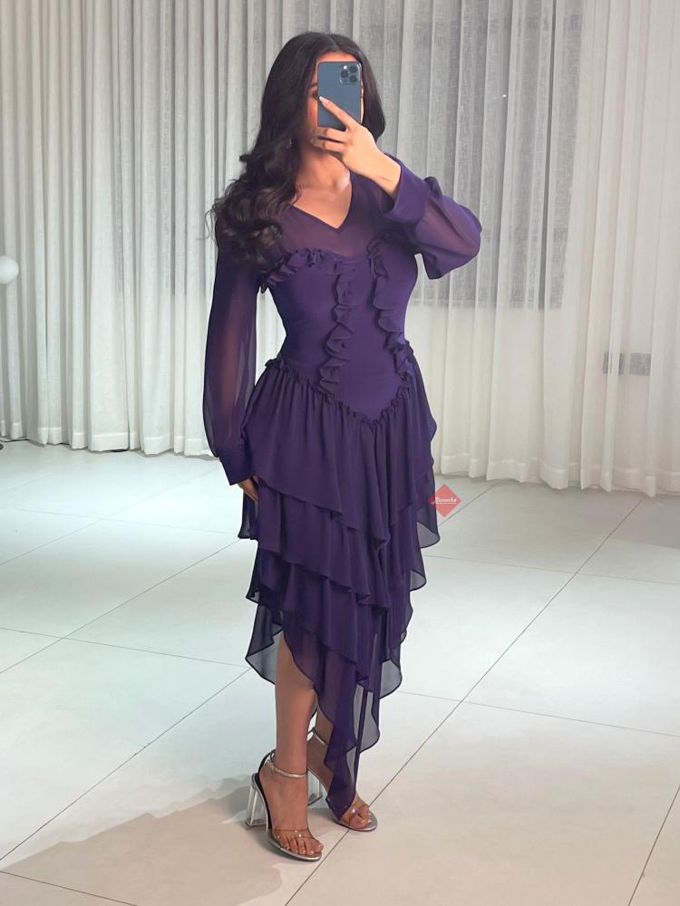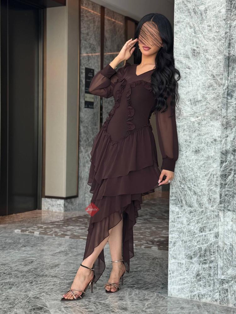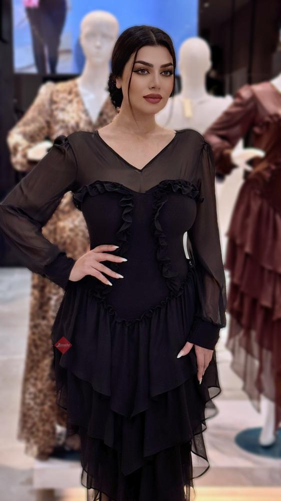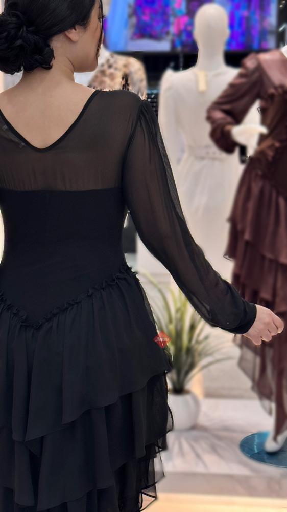 بينوش – فستان تل ناعم استرتش باكمام طويلة ستايل طبقات