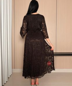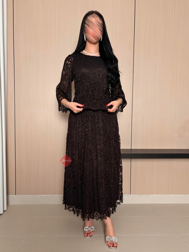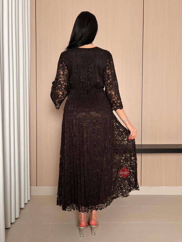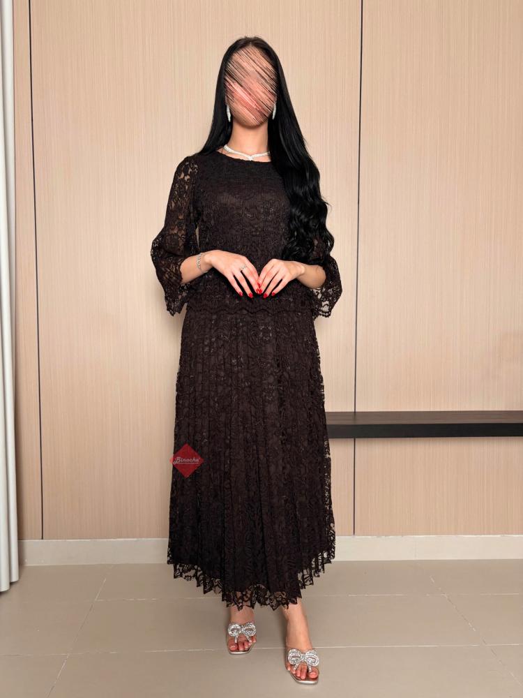 بينوش – فستان دانتيل بليسيه ناعم مع اكمام واسعة