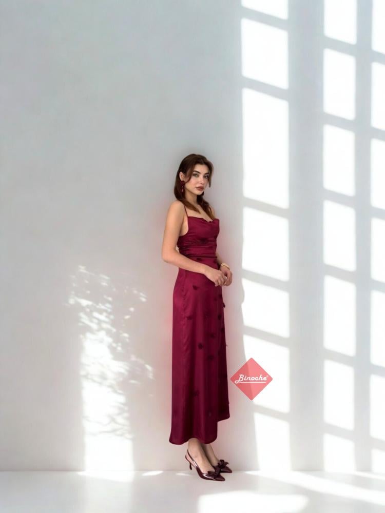 بينوش – فستان ساتان ناعم مزين بأزهار