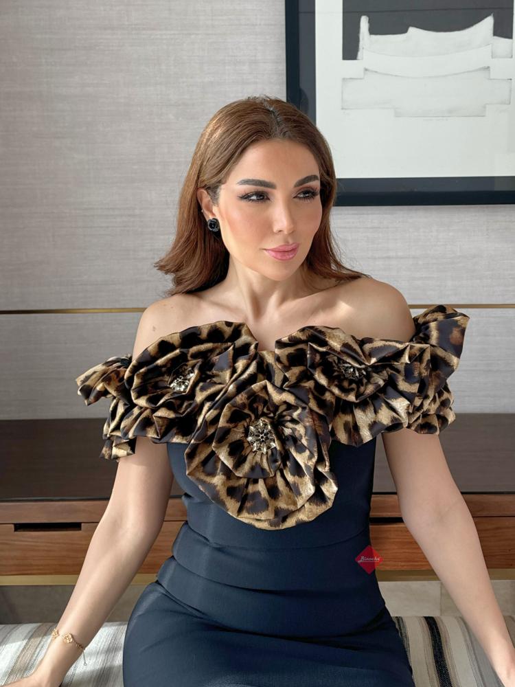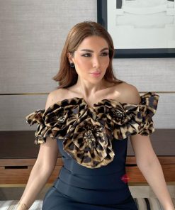 بينوش – فستان سهرة اوف شولدر مزين بالورود برنت تايجر