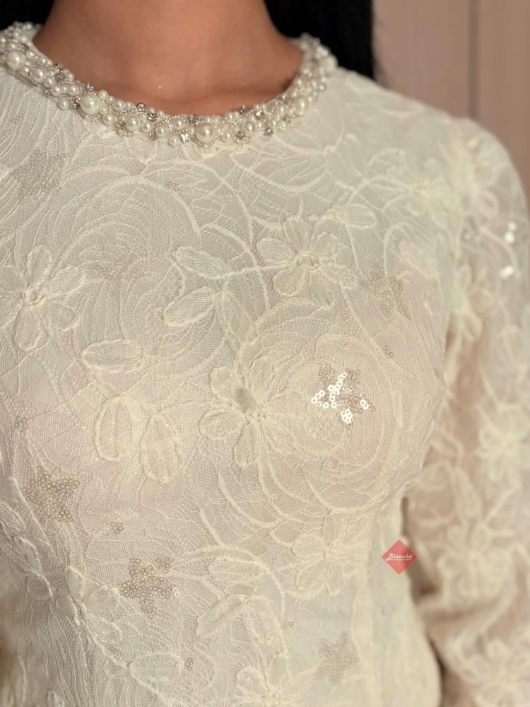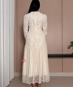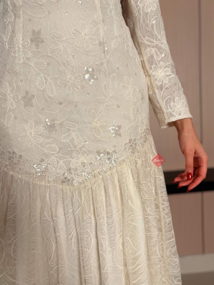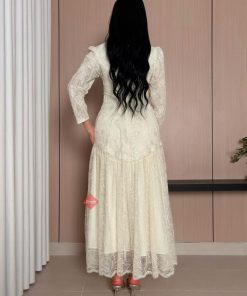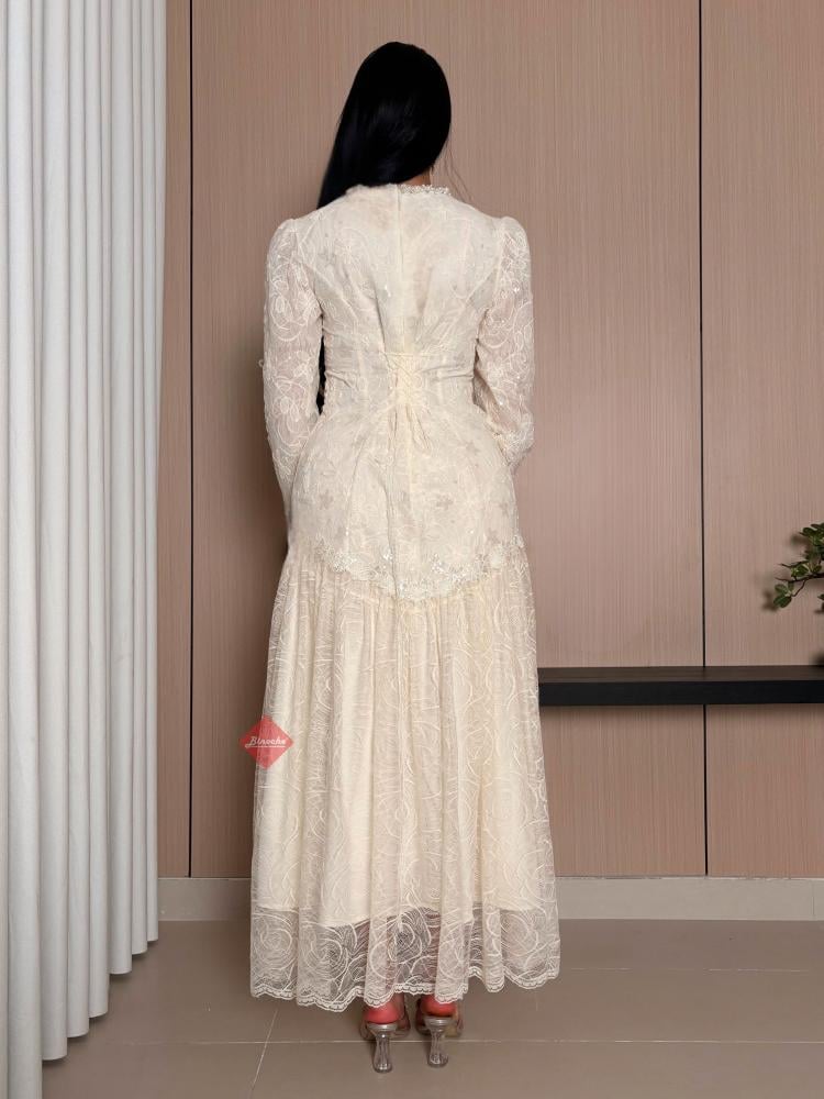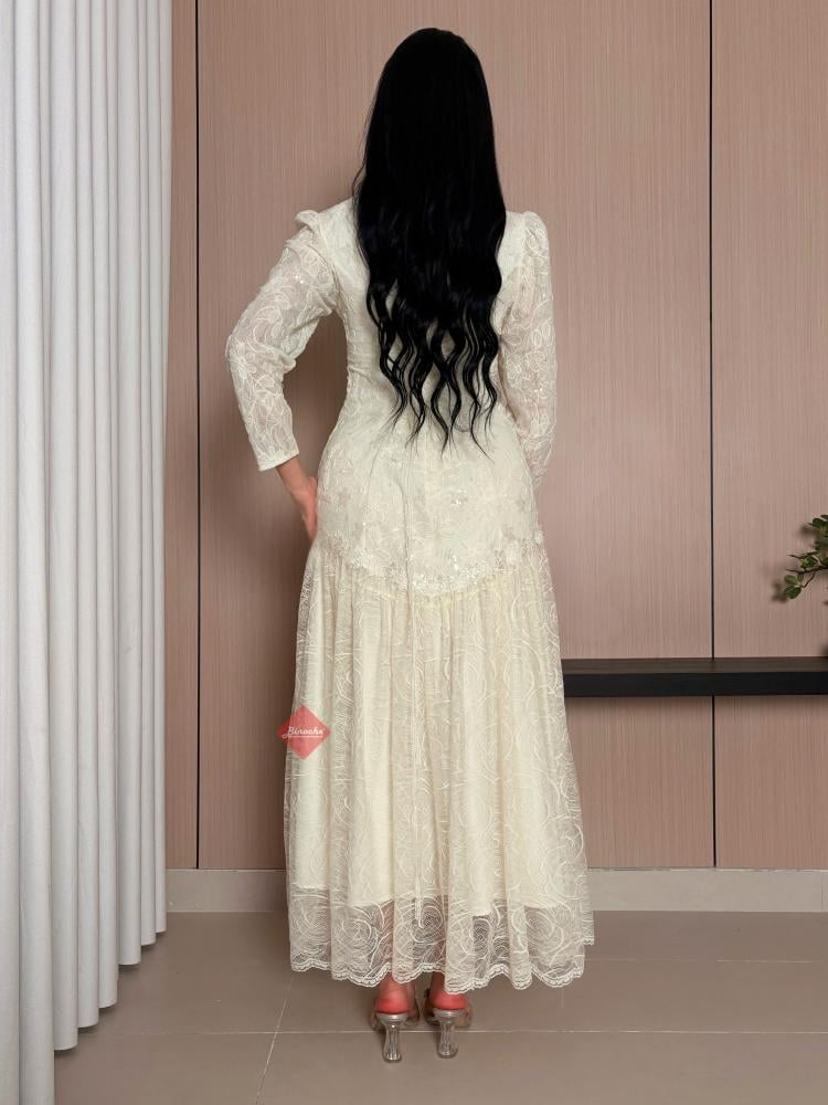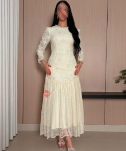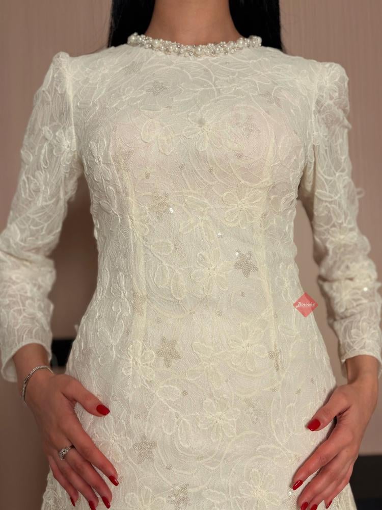 بينوش – فستان سهرة باكمام طويلة مزينة بالدانتيل الراقي