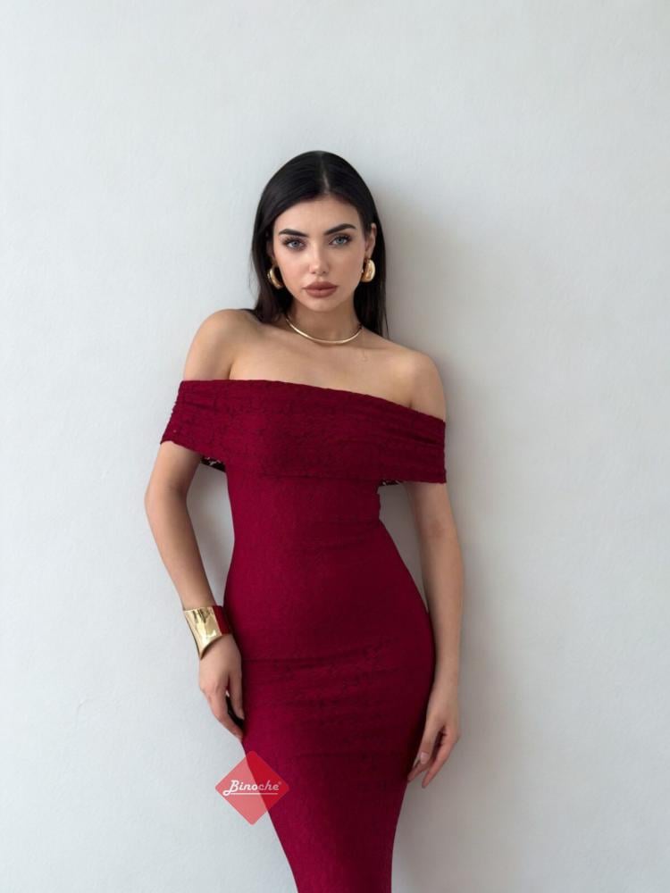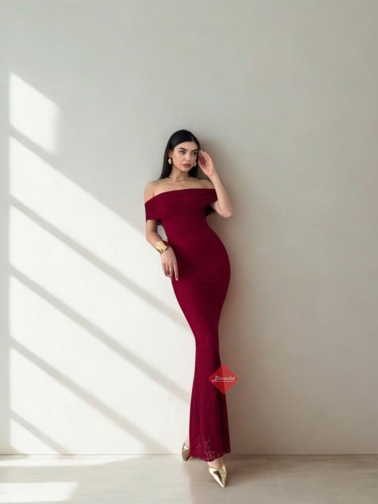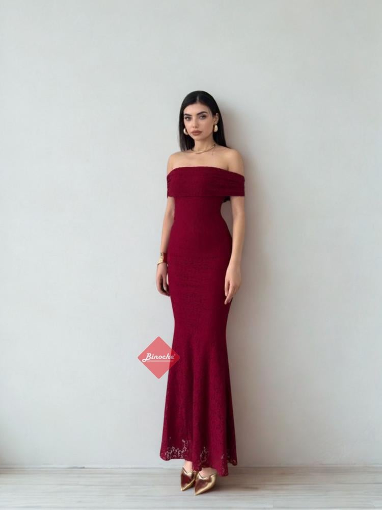 بينوش – فستان سهرة ناعم دانتيل اوف شولدر