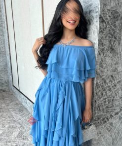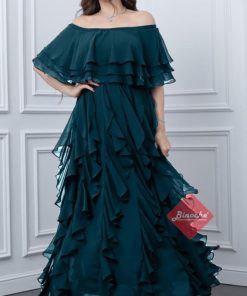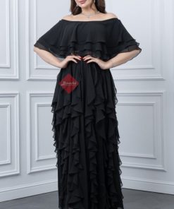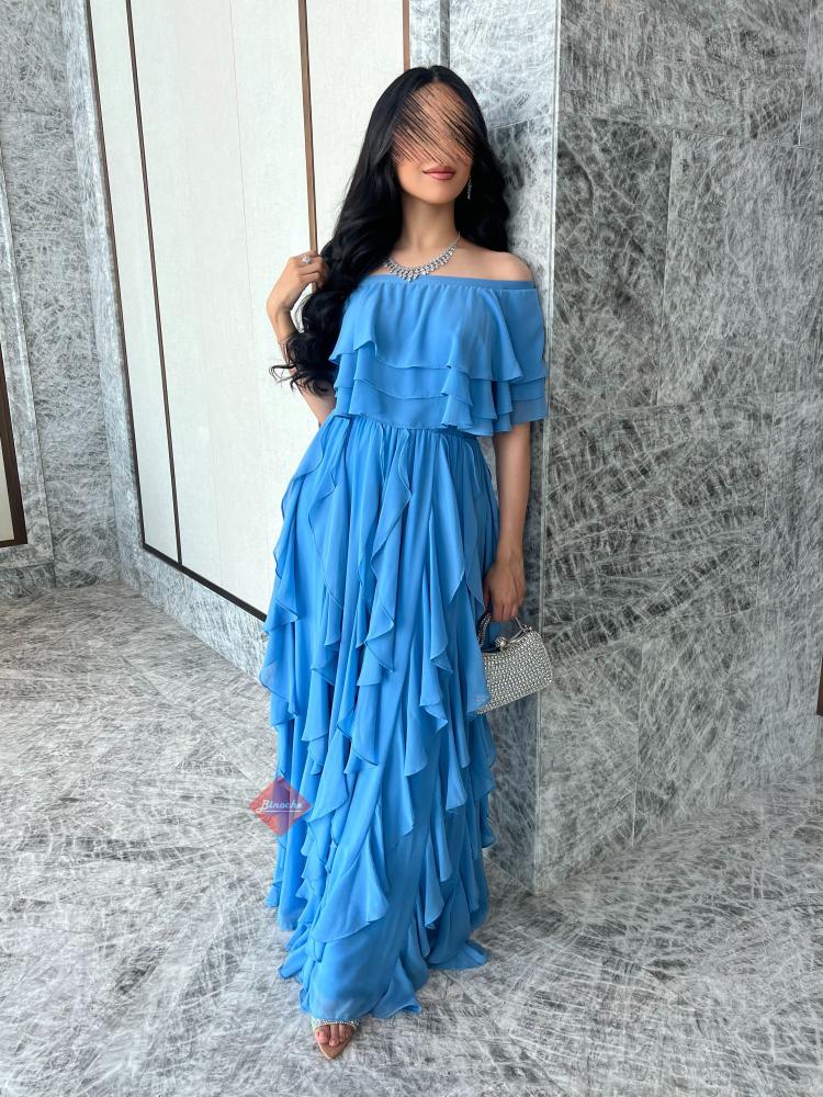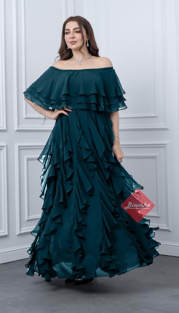 بينوش – فستان سهرة اوف شولدر مزين بالورود من الصدر