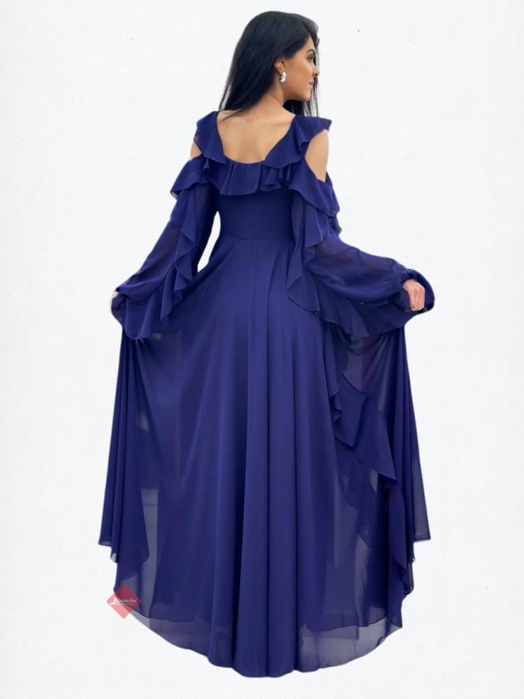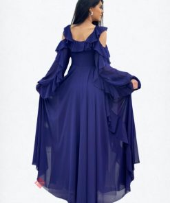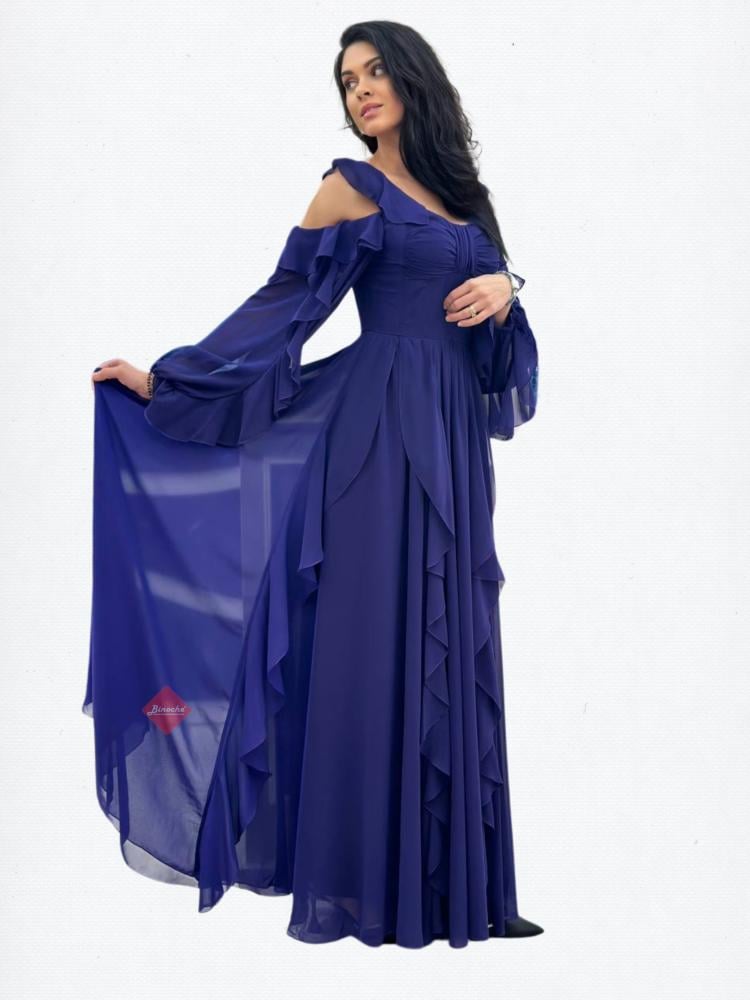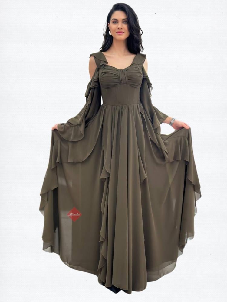 بينوش – فستان طويل كريب ناعم باكمام شيفون و كلفة مطرزة على الكتف