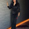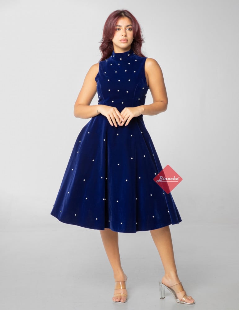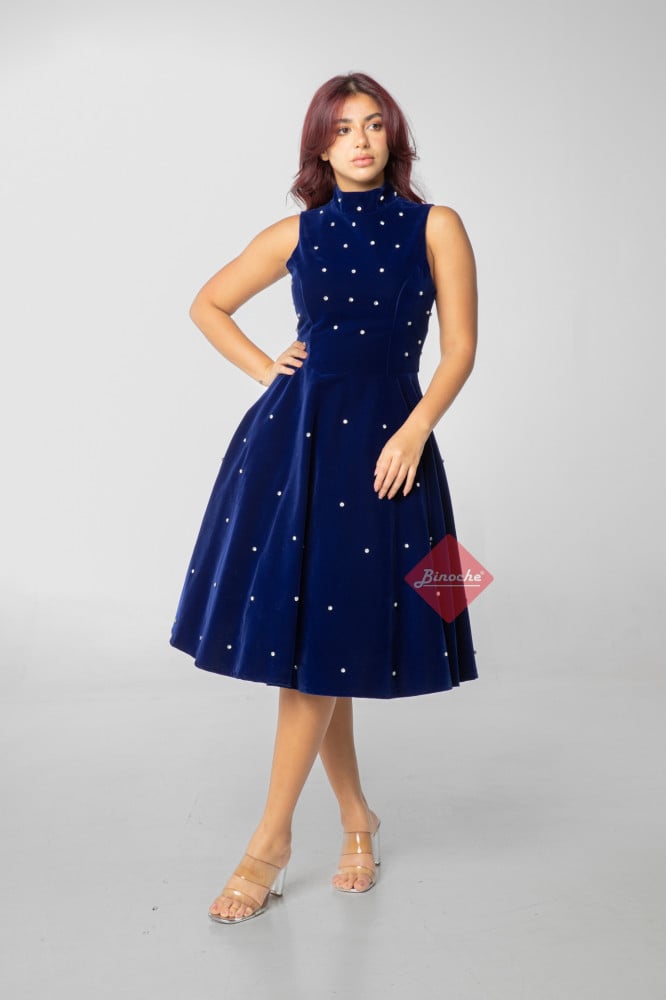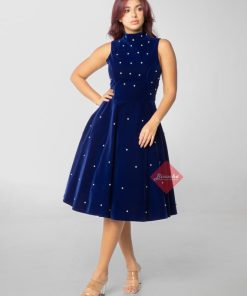 بينوش – فستان قصير هاي نك بتطريز كريستال كحلي