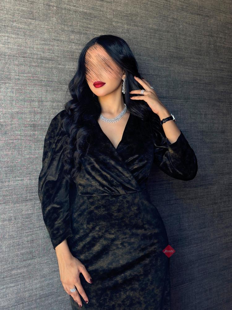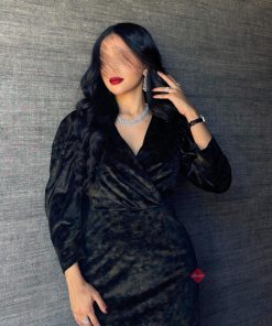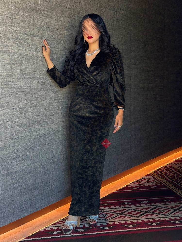 بينوش – فستان سهرة مزين من الصدر بحركة مميزة و خامة الكريب الفاخر