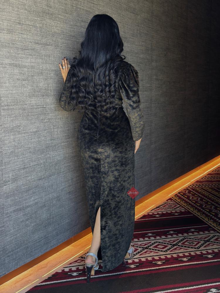 بينوش – فستان راقي بتصميم مزينه بالدانتيل الراقي والورود