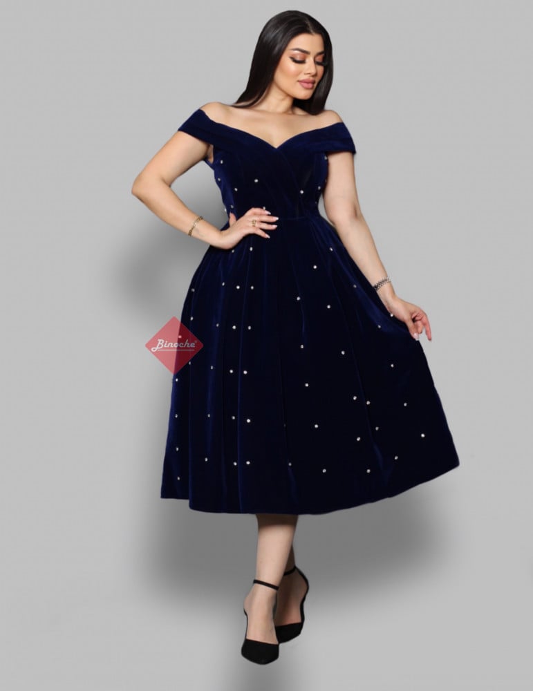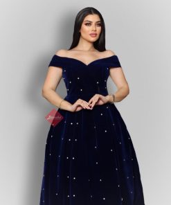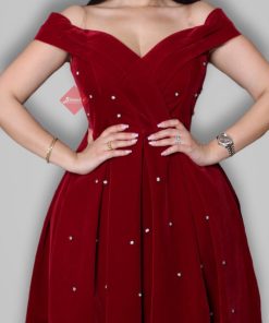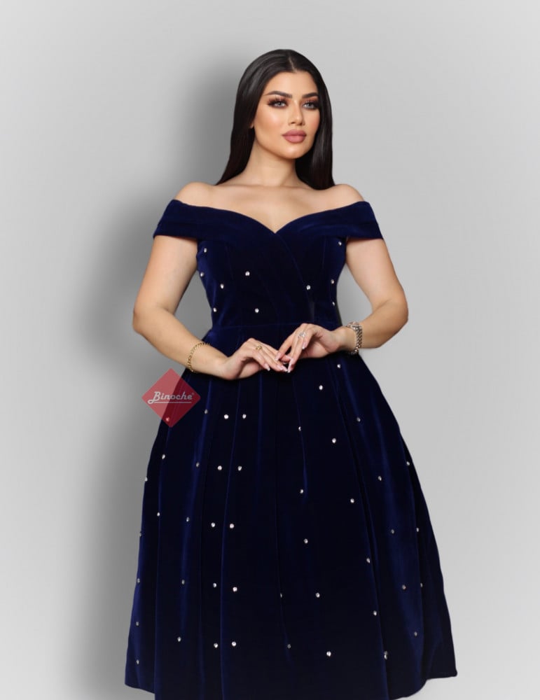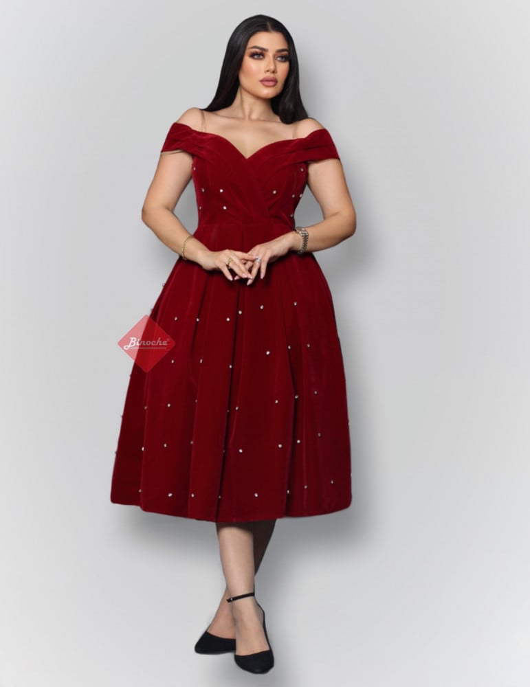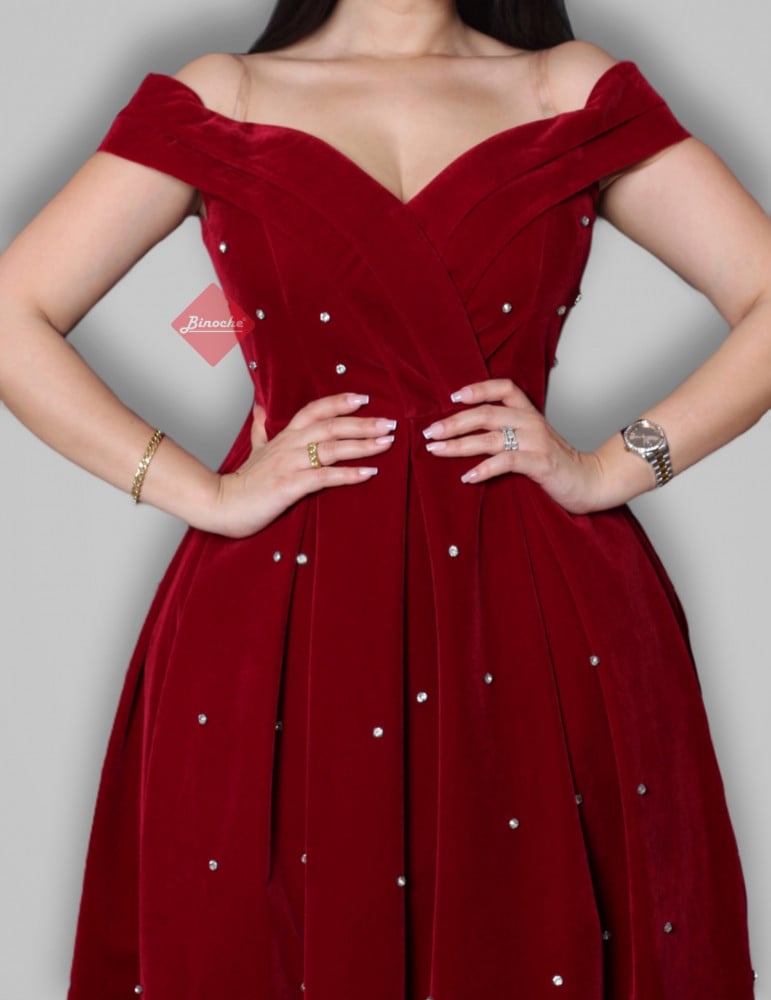 بينوش – فستان مخمل مزين بالكريستال اوف شولدر