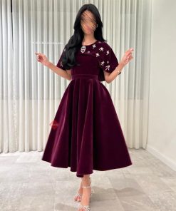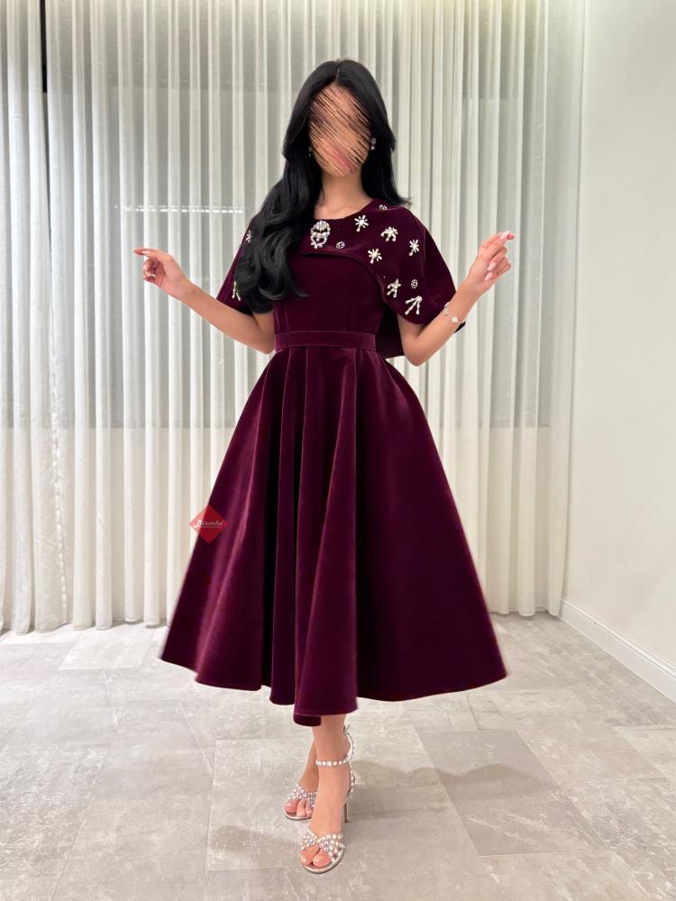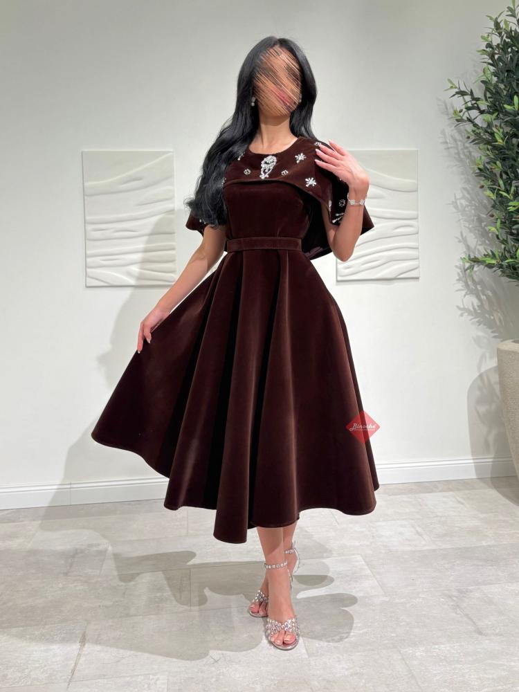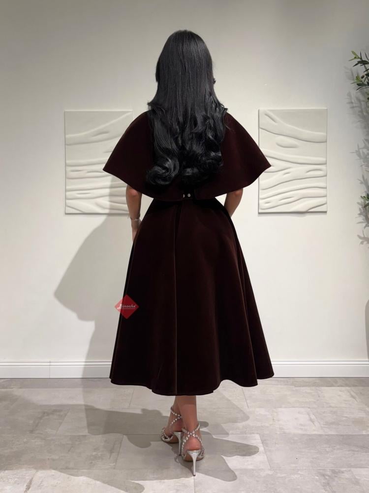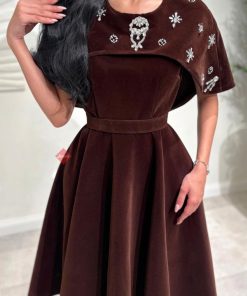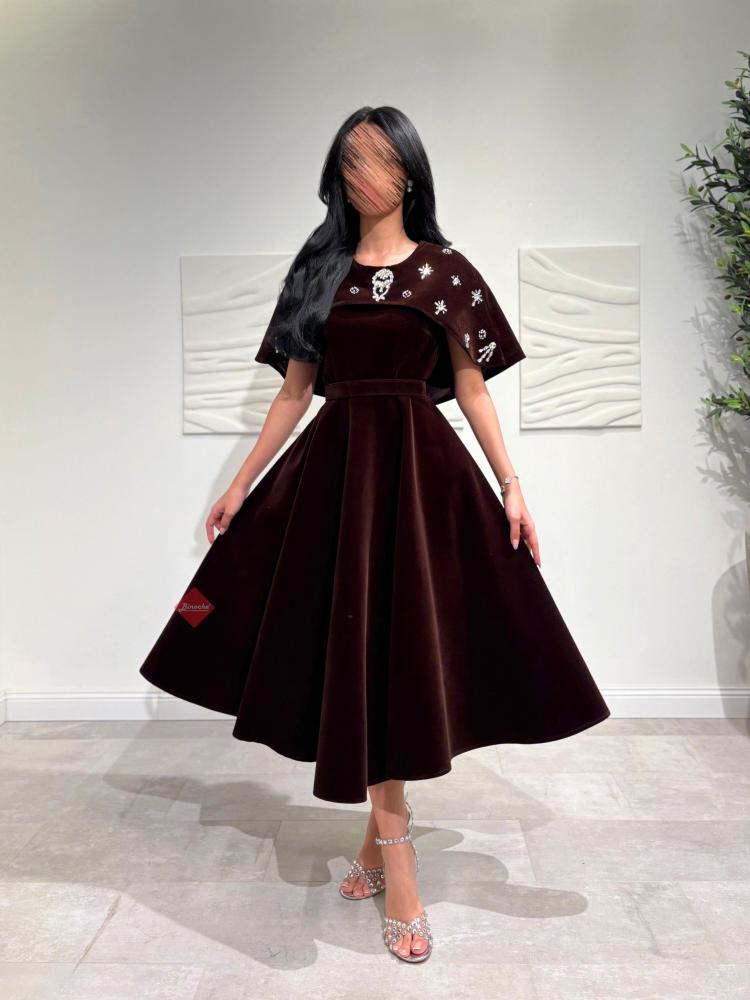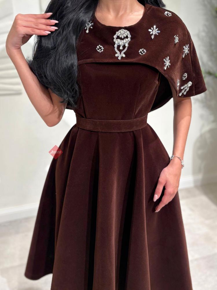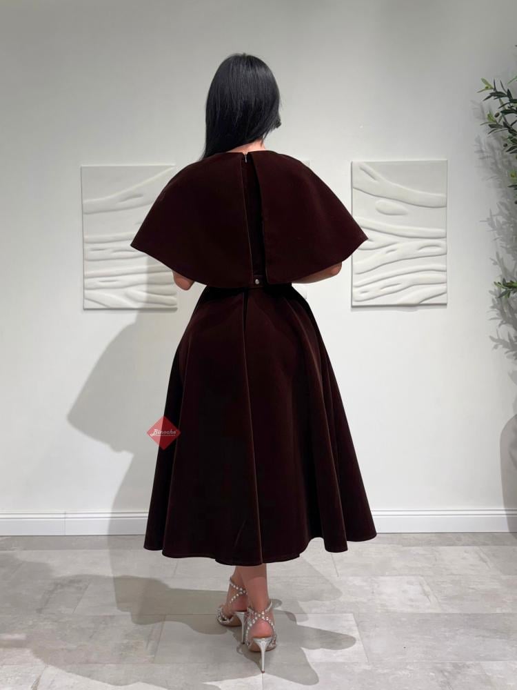بينوش – فستان مخمل ناعم ميدي كلوش