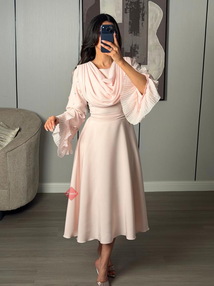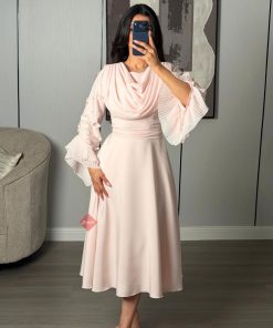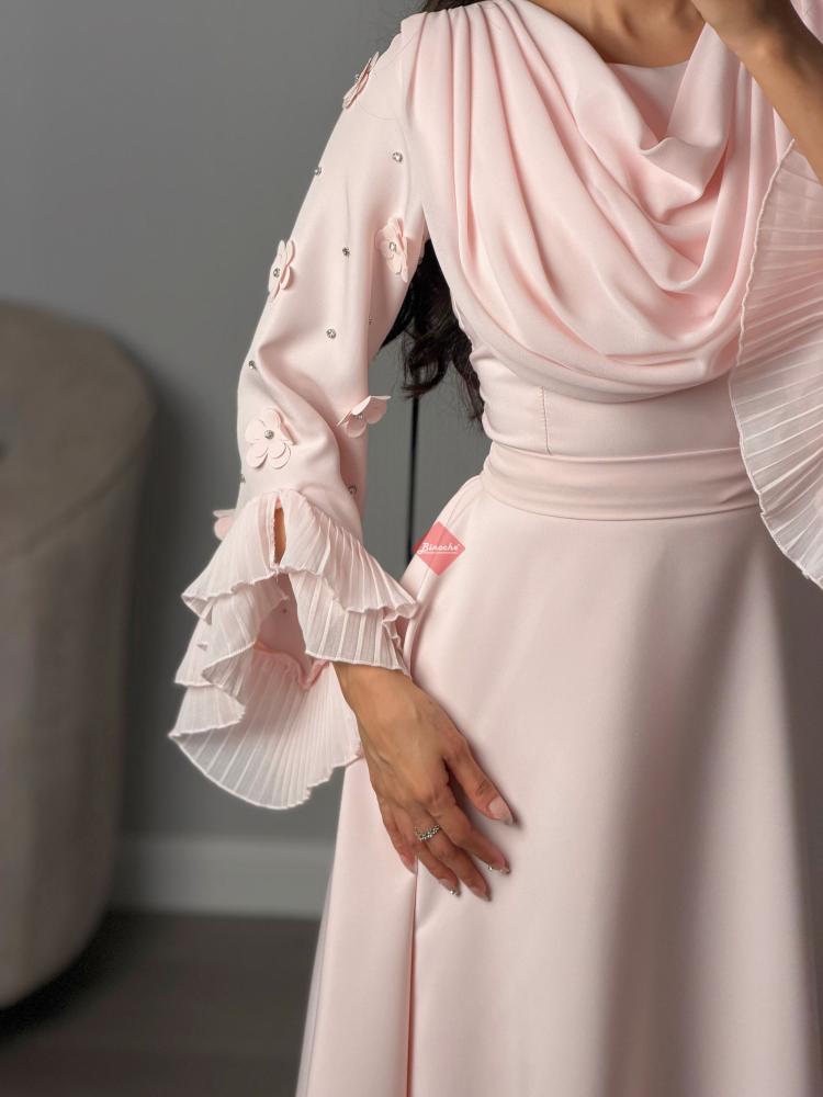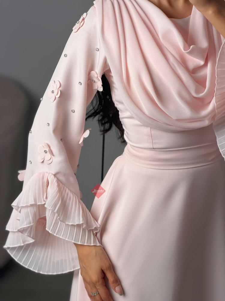 بينوش – فستان ناعم بأكمام واسعة مزين بالورود
