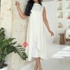 بينوش  – فستان ناعم تل استرتش بأكمام طويله مزين بكرانيش