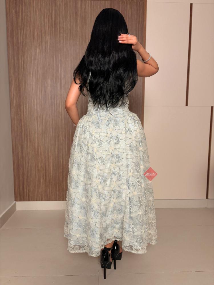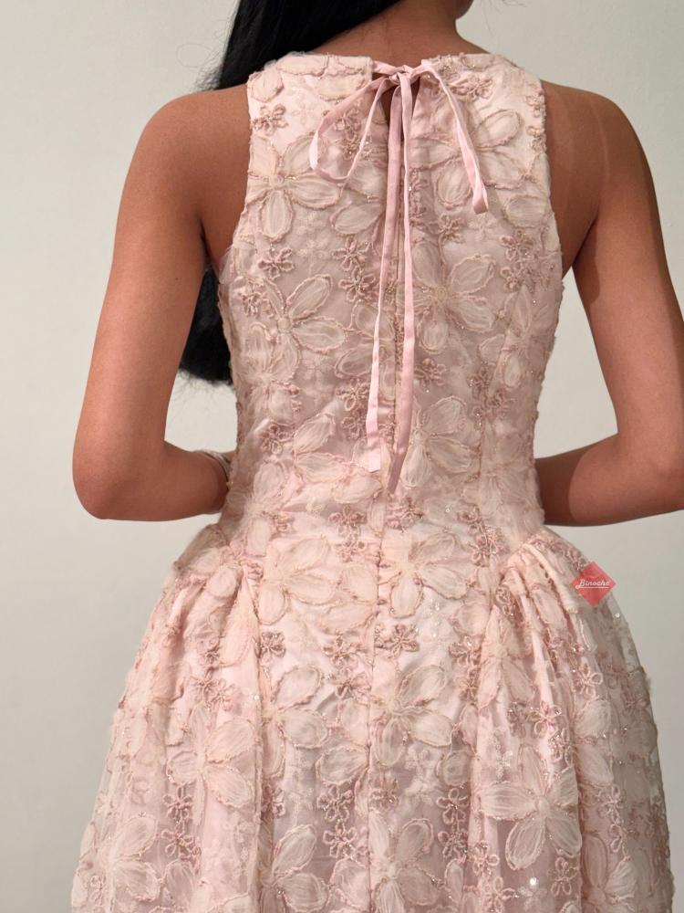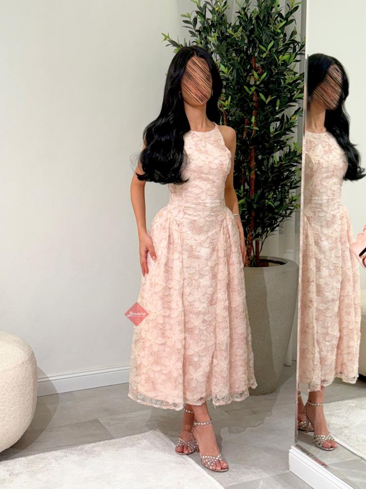 بينوش  – فستان ناعم ميد بقصه كت مطرز بالورود