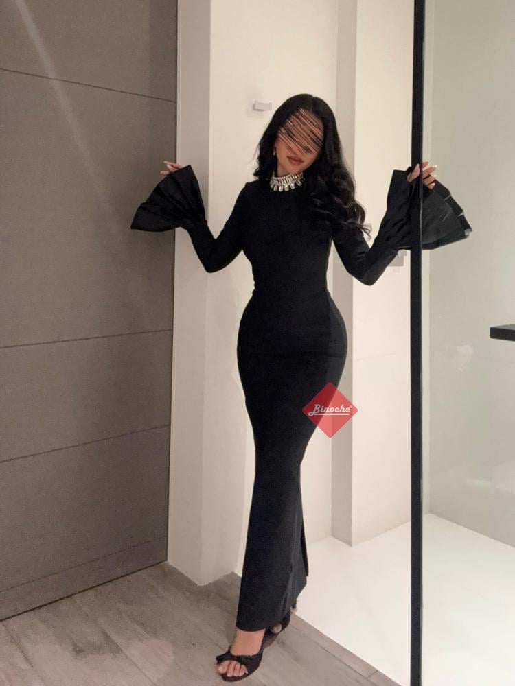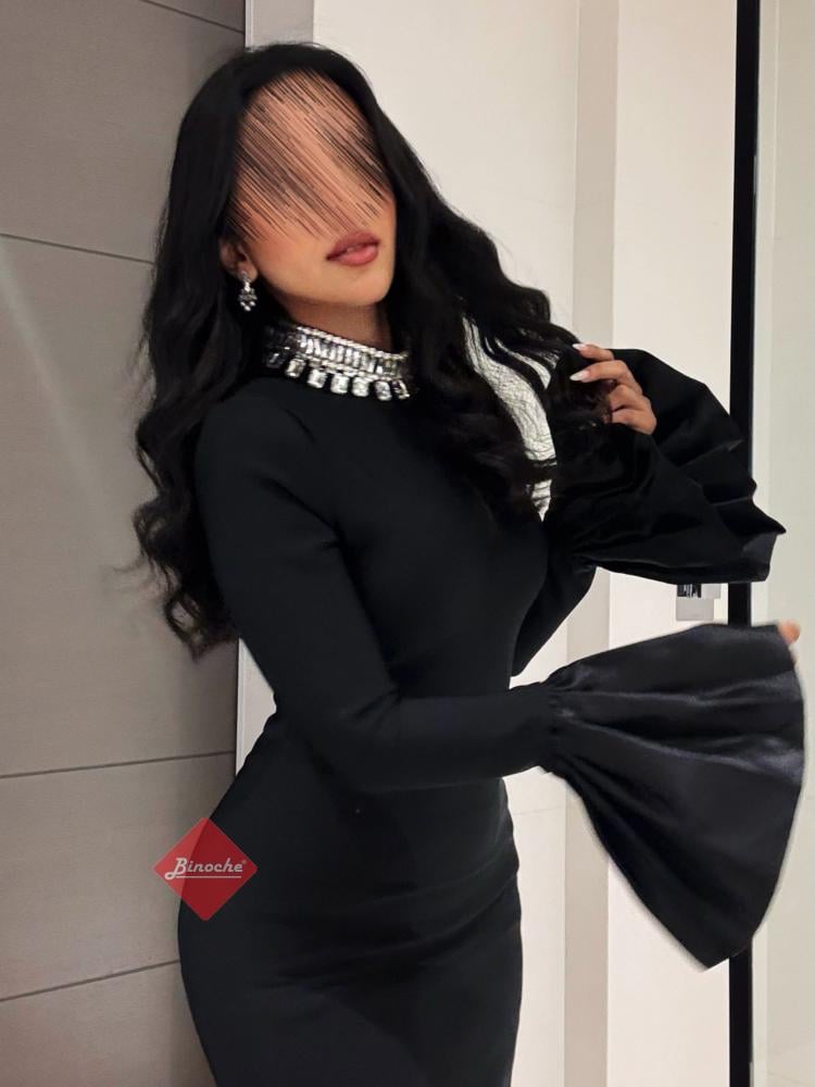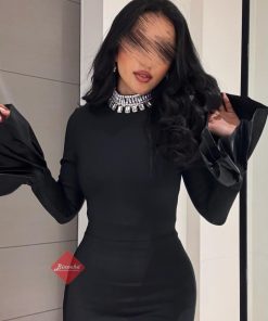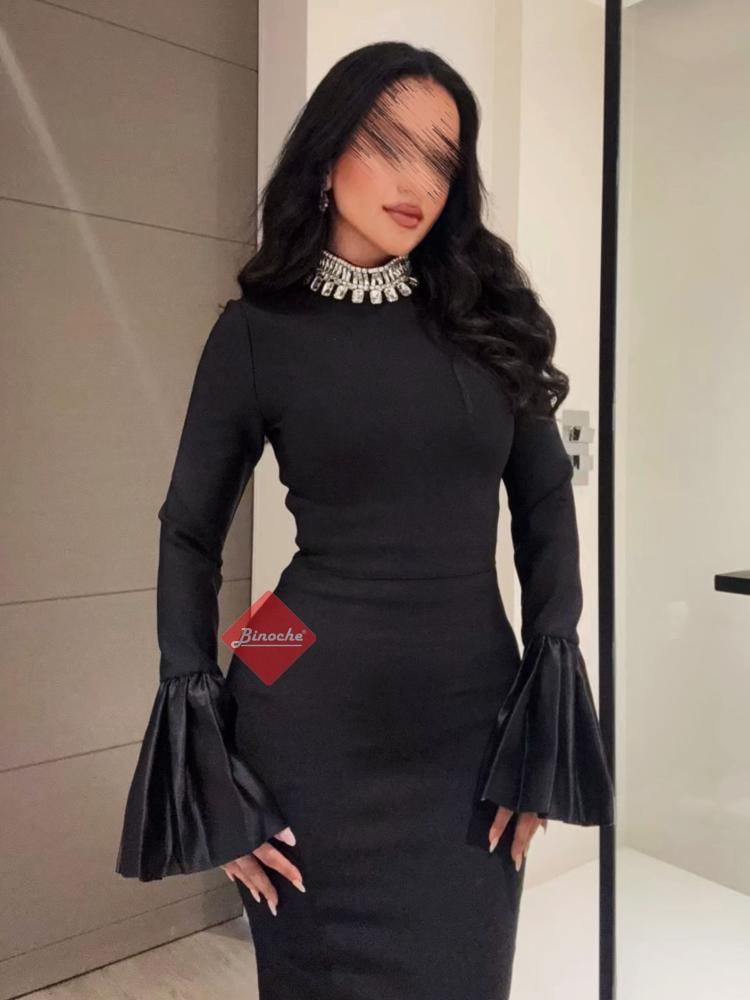 بينوش – فستان ناعم هاي نيك مزين بالكريستال و اكمام طويلة