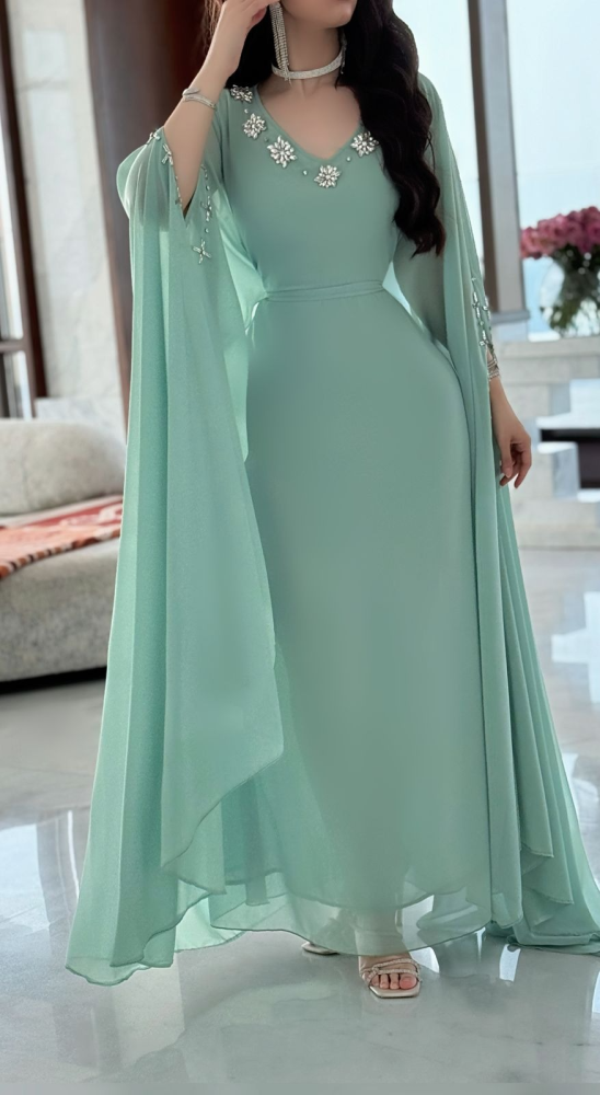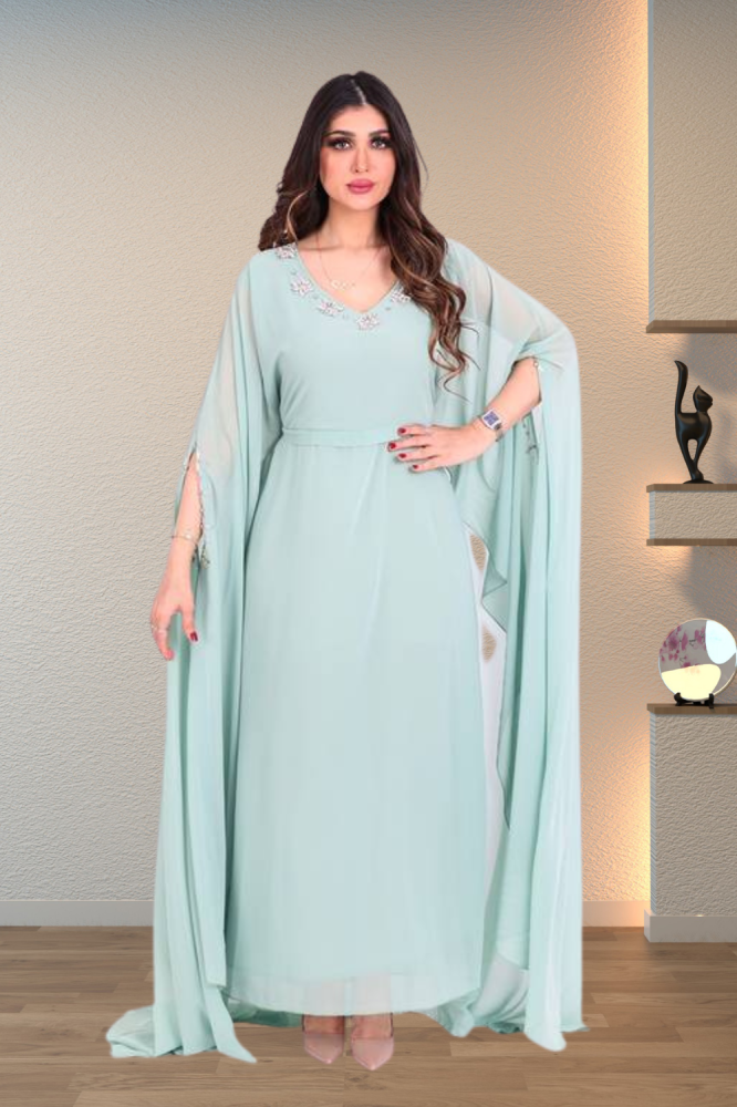 دار الجلابية – عباية كتان بكلفة و تطريز ترتر علي الكم
