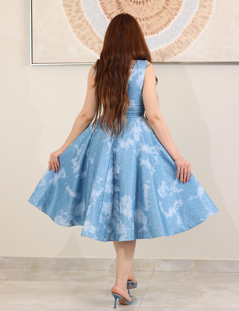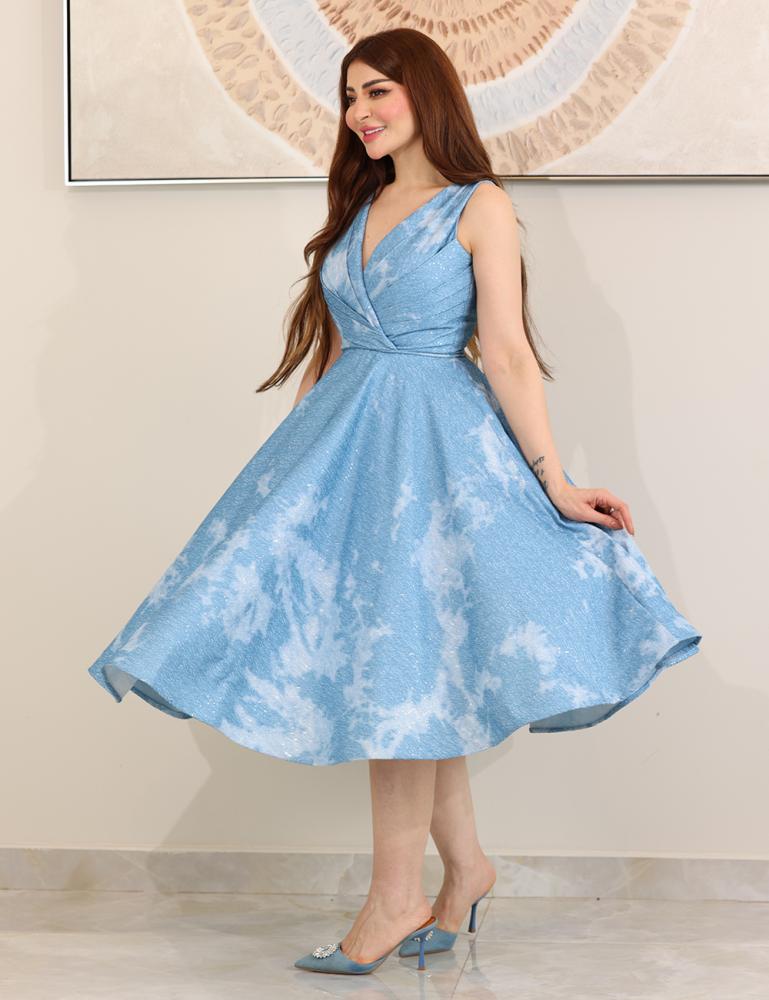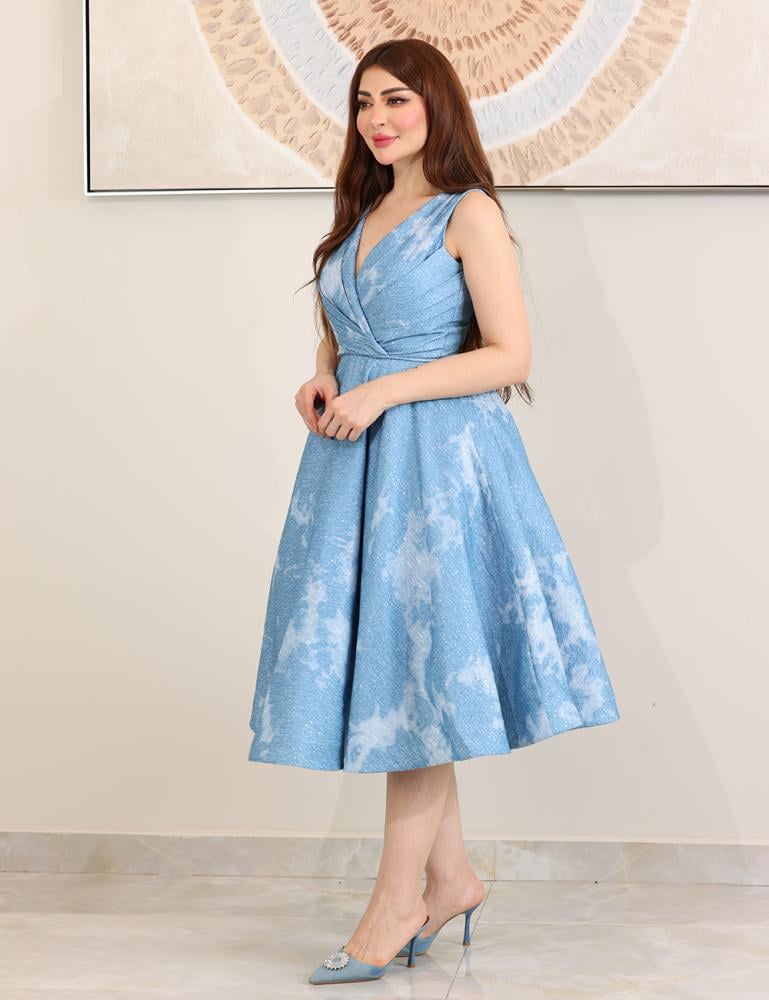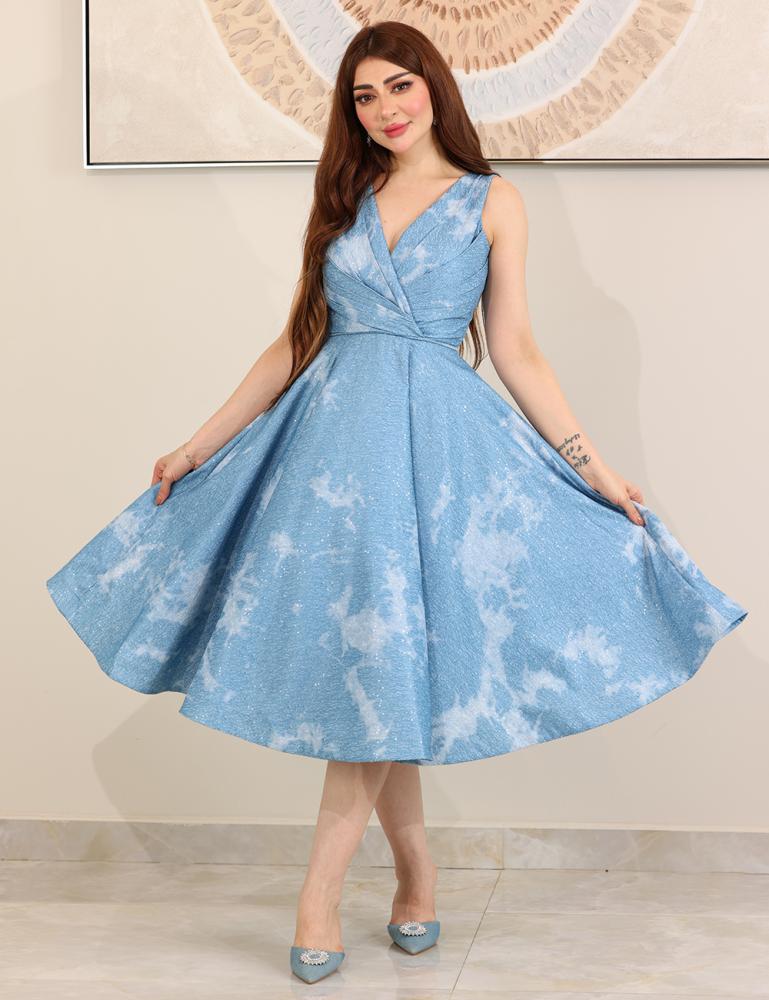 تريجر آيلاند – فستان أزرق سماوي ممزوج بتأثيرات بيضاء ناعمة
