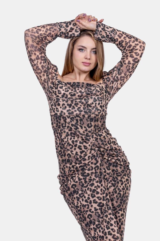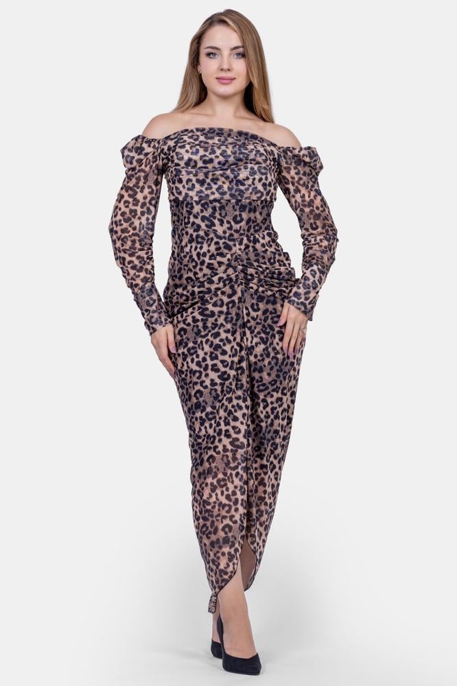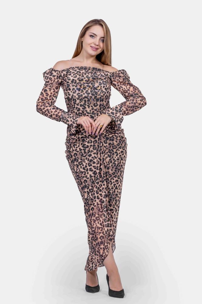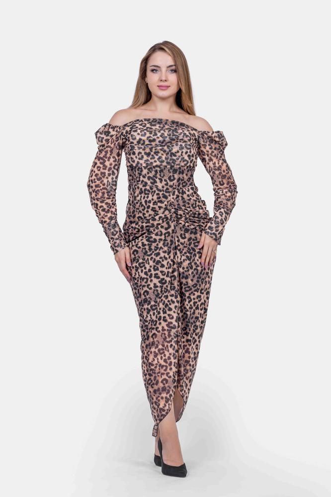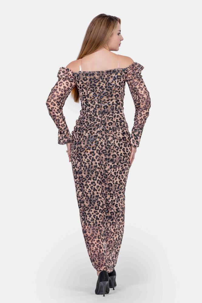 تريجر آيلاند – فستان تايجر نمري طويل ماسك اوف شولدر اكمام طويلة