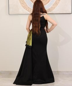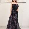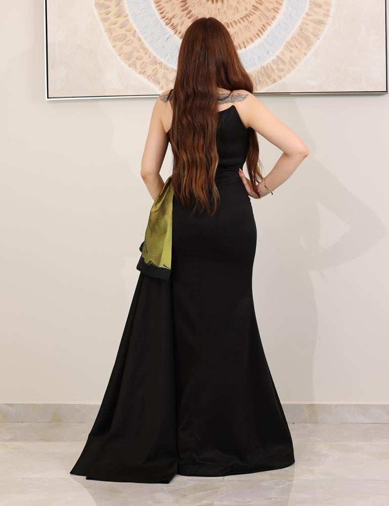 تريجر آيلاند – فستان سهرة أسود تصميم أوف شولدر مزين بتطريزات لامعة