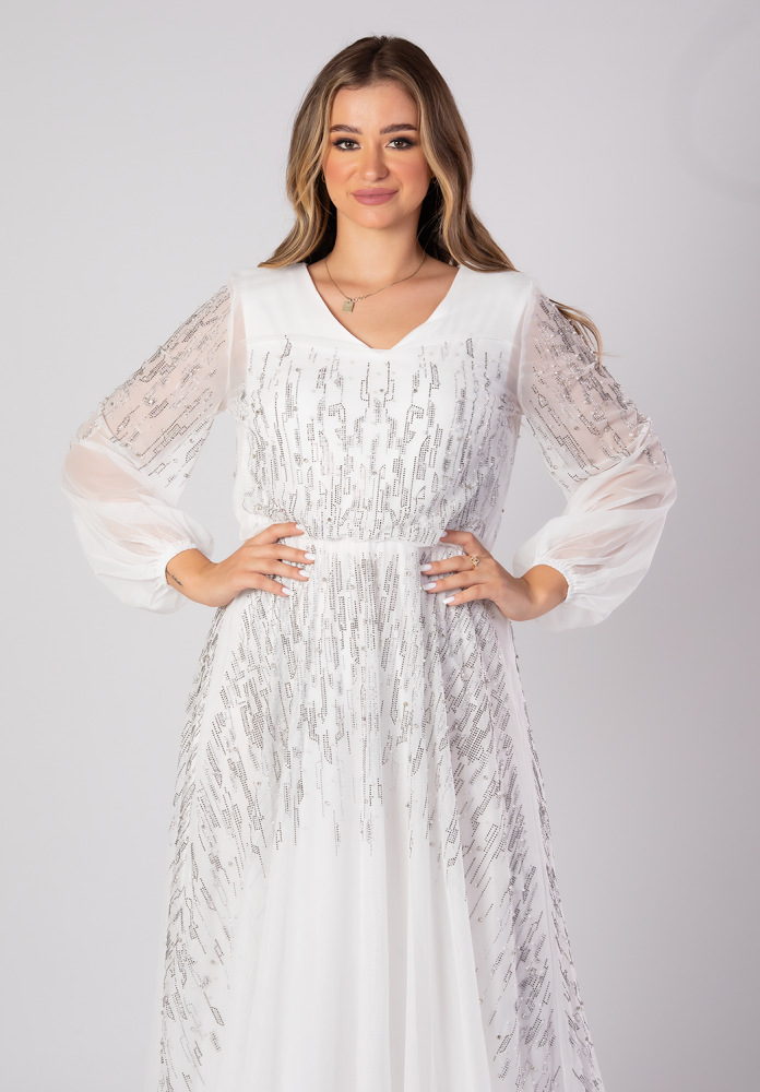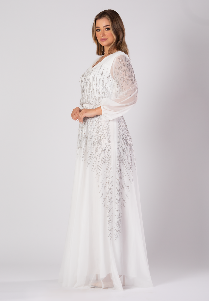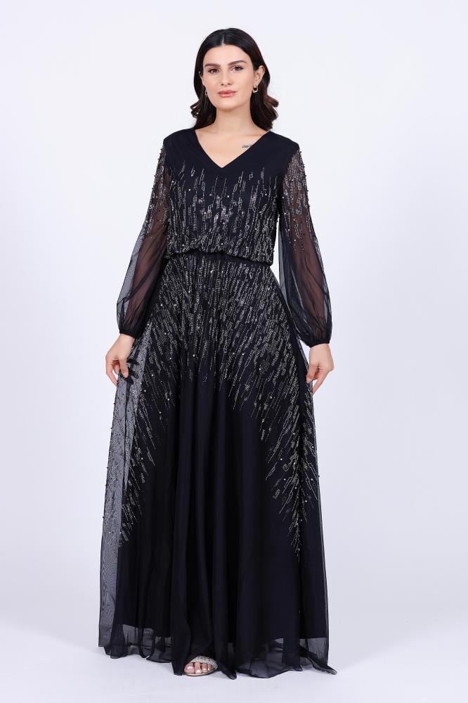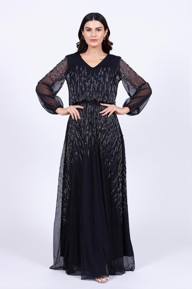 تريجر آيلاند – فستان سهرة طويل تل باكمام طويله