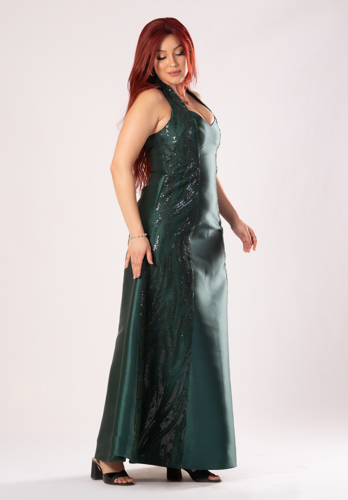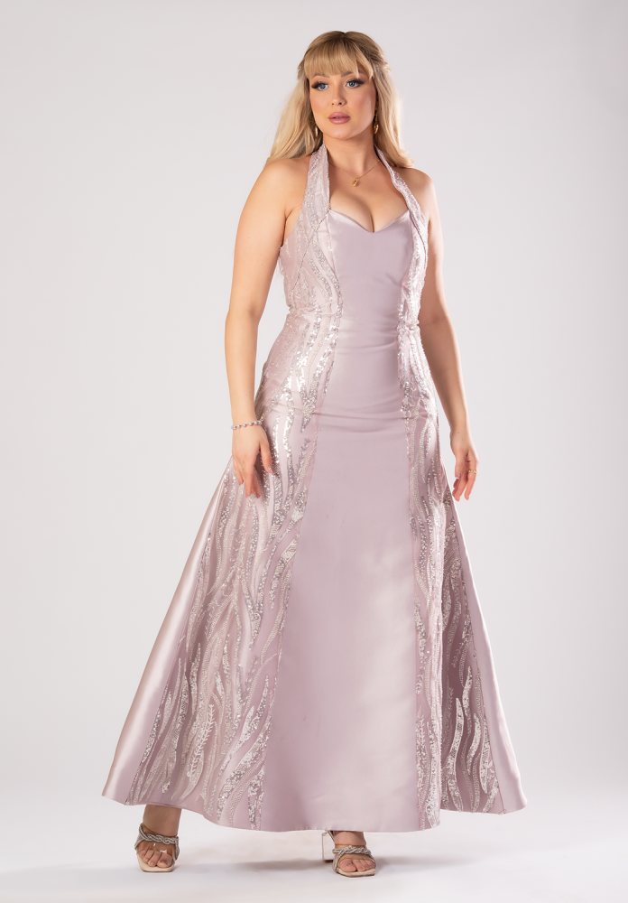 تريجر آيلاند – فستان سهرة طويل ساتان باكتاف اوف شولدر