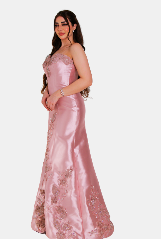 تريجر آيلاند – فستان سهرة طويل ساتان مزين بالتطريز