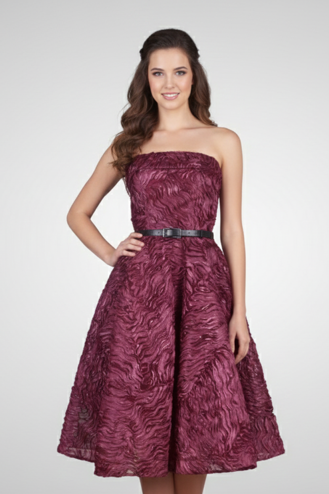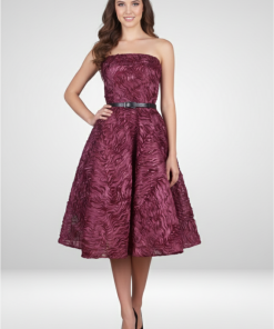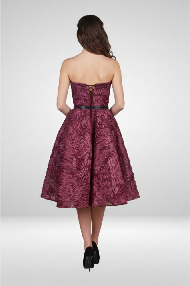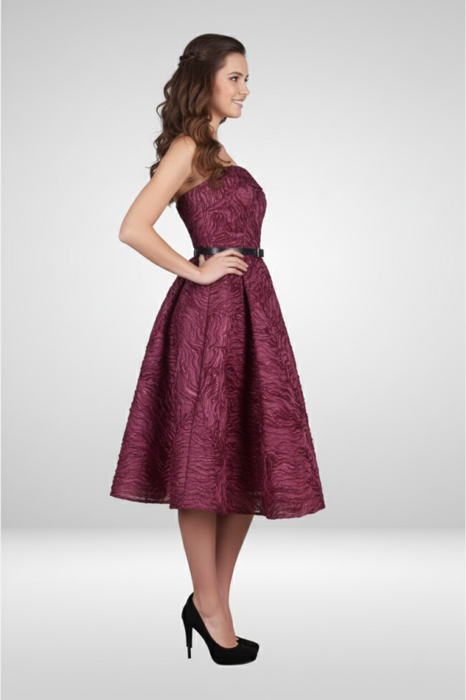 تريجر آيلاند – فستان سهرة ميدي انيق بدون اكتاف بحزام اسود
