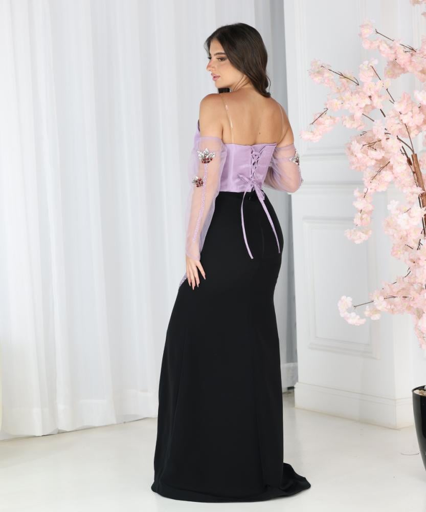 تريجر آيلاند – فستان بنفسجي يتميز بتصميم واسع ومنسدل بأكمام طويلة