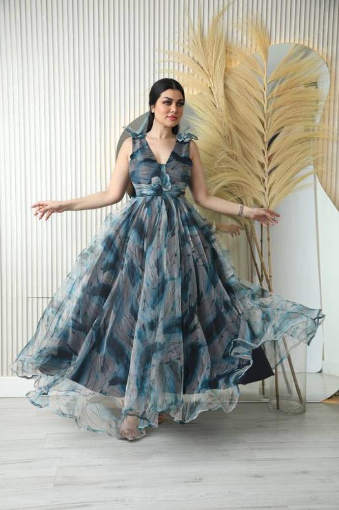 تريجر آيلاند – فستان طويل اورجنزا و تل بلا اكمام