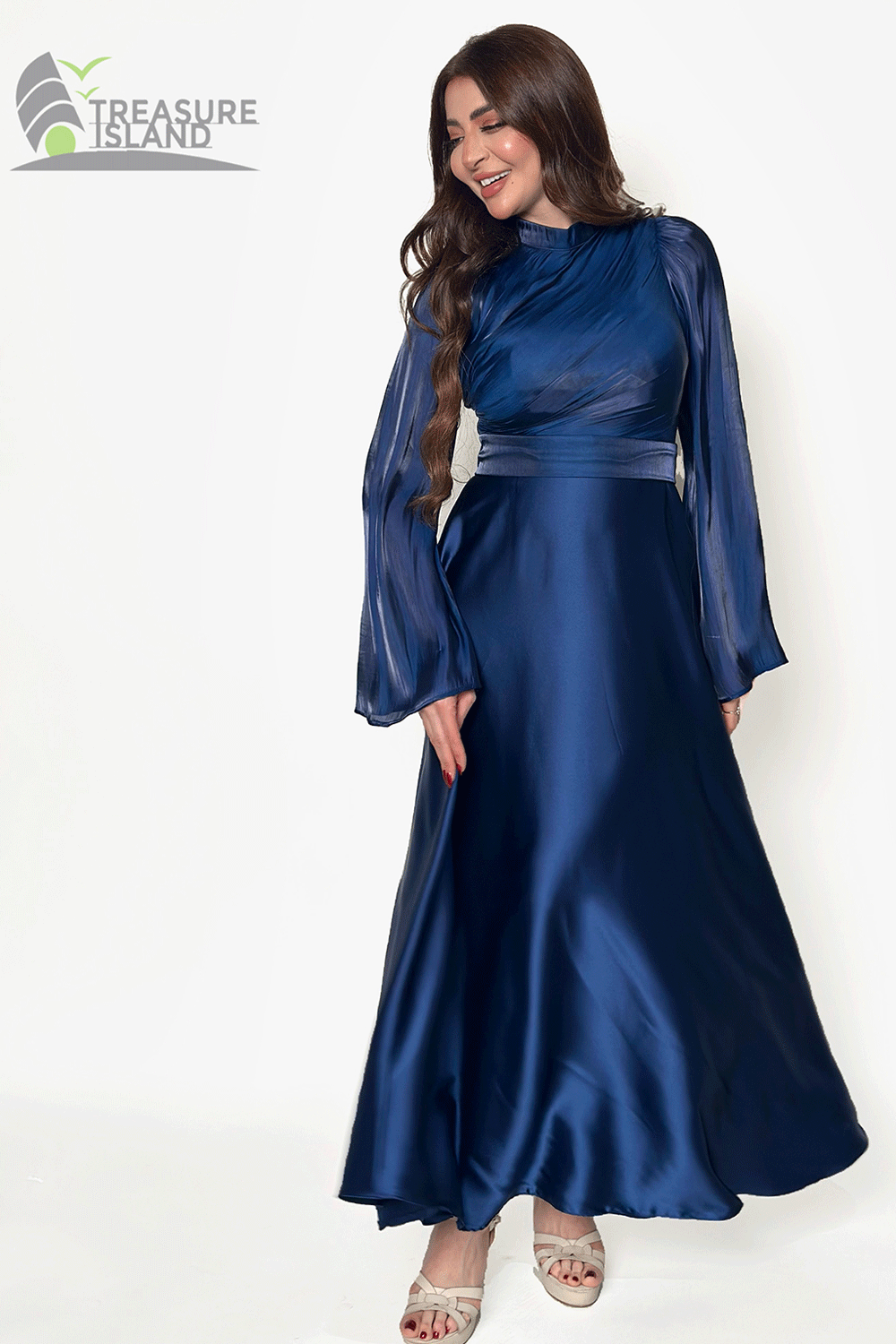 تريجر آيلاند – فستان طويل ستان بكسرات