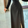 تريجر آيلاند – فستان كم طويل سراميك.مزين بكلفه على الصدر