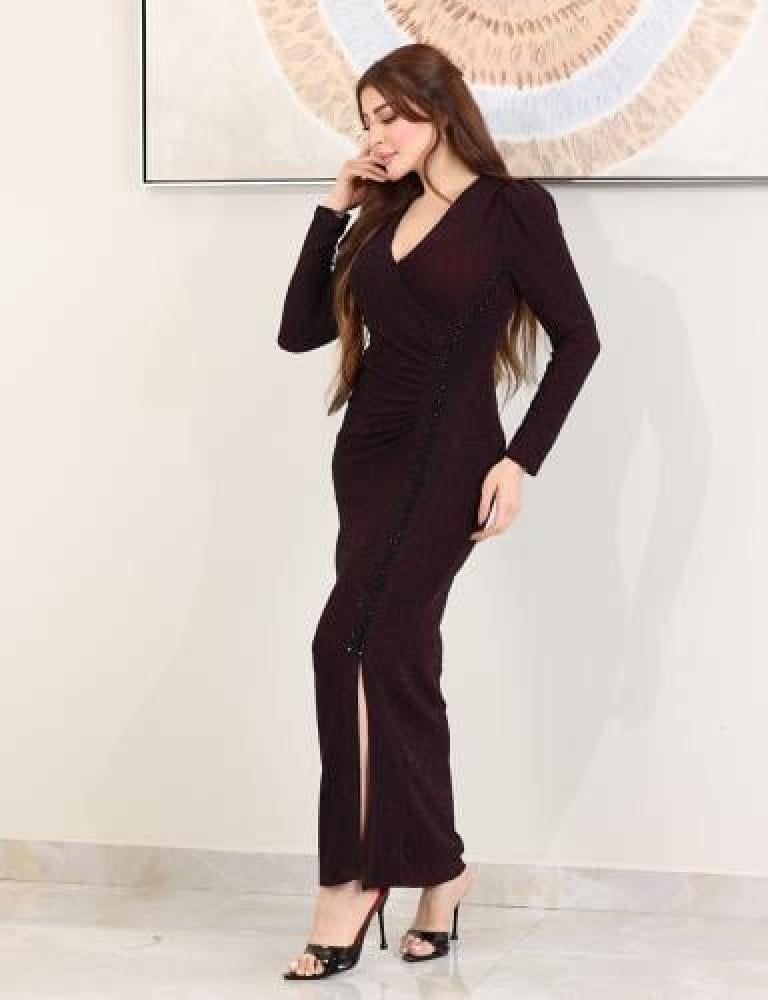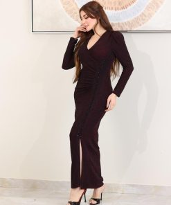 تريجر آيلاند – فستان كم طويل قرنقدي لف مزين فصوص
