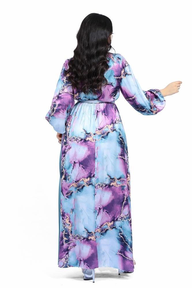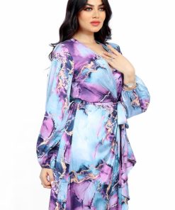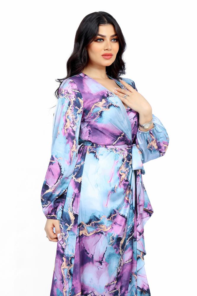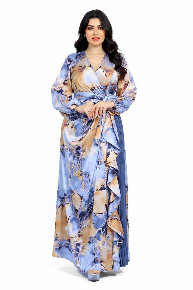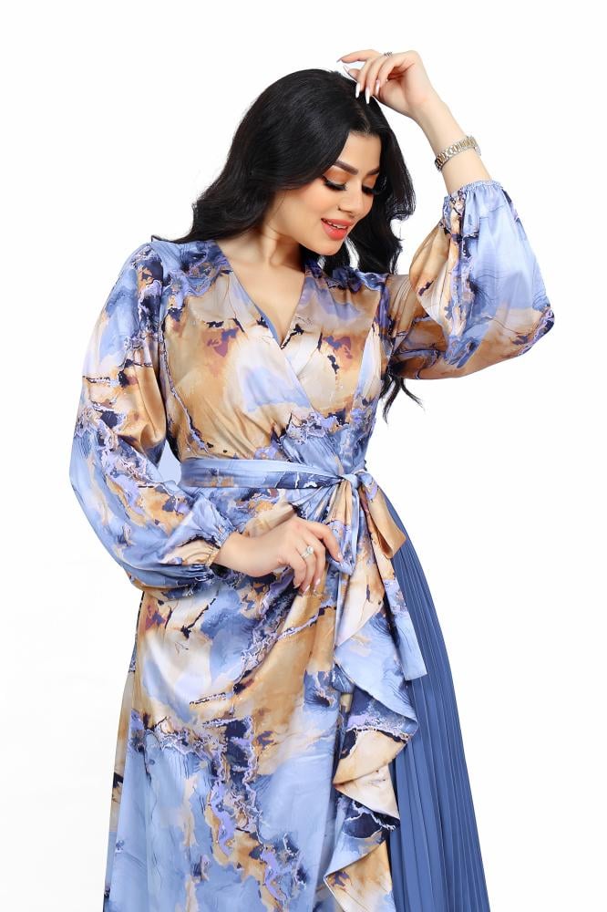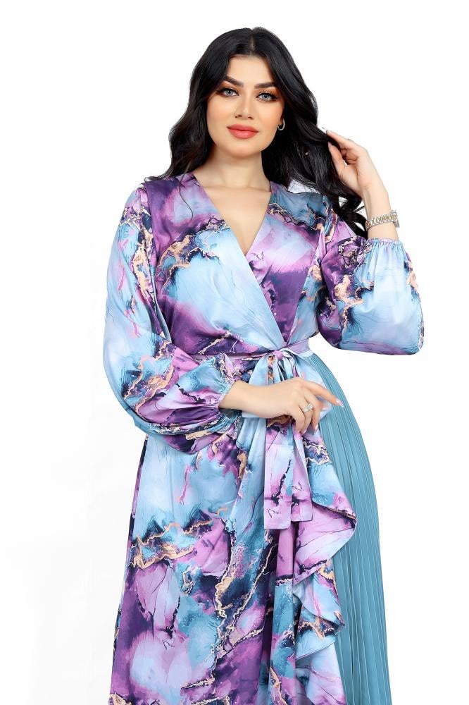 تريجر آيلاند – فستان مشجر طويل كسرات و درابيه بالوان زاهية و اكمام طويلة