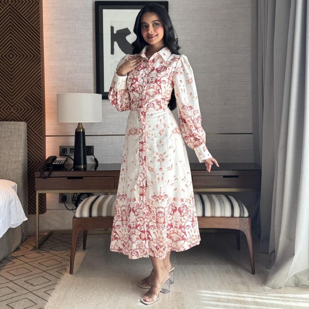تريجر آيلاند – فستان ميدي بيج بتشجيره احمر