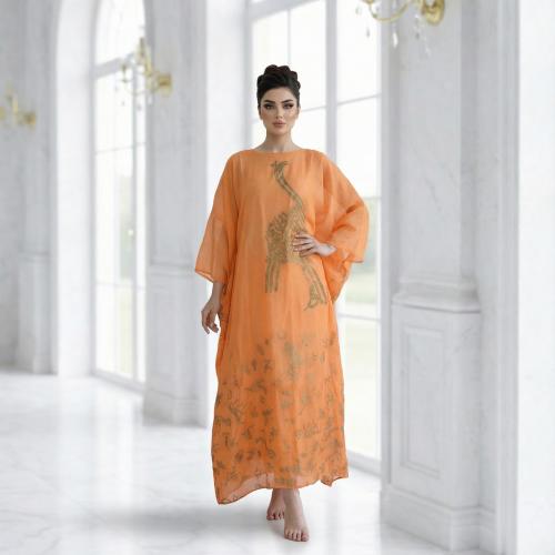 جلابية برتقالية بنقشة أنيقة ولمسة عصرية راقية