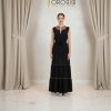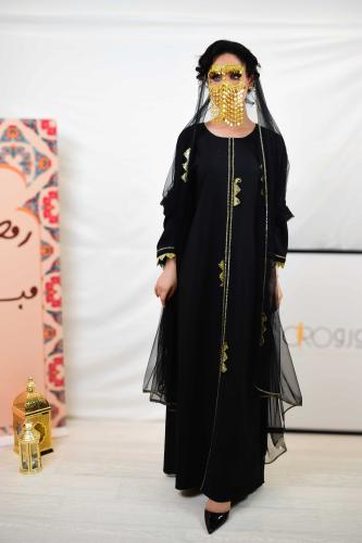 جلابية طويلة بلون أسود وبيج بنقشة عصرية ولمسة راقية