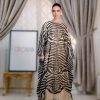 جلابية طويلة بلون أسود وبيج بنقشة عصرية ولمسة راقية