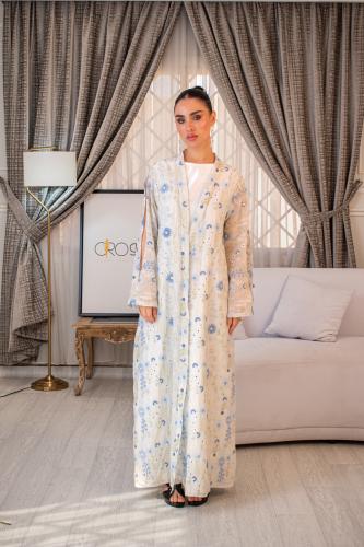 جلابية رمادي فخمة واسعة بتطريز تراثي – إطلالة كلاسيكية مميزة.
