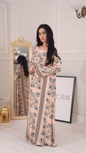 جلابية طويلة بلون أسود وبيج بنقشة عصرية ولمسة راقية