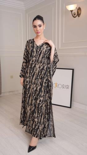 جلابية فاخرة باللونين الأبيض والذهبي بطبعة حمار وحشي جريئة وتطريز عربي – فخامة سعودية عصرية