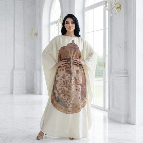 جلابية طويلة أوف وايت بتفاصيل فنية ولمسة راقية