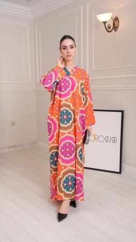 جلابية برتقالية بنقشة أنيقة ولمسة عصرية راقية