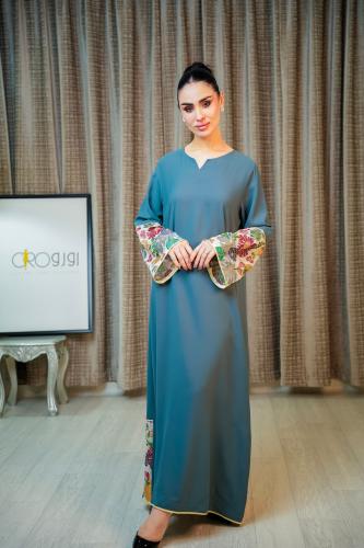 دار الجلابية – عباية كتان بكلفة و تطريز ترتر علي الكم