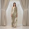 جلابية طويلة باللون البيج بنقوش أنيقة ولمسة راقية