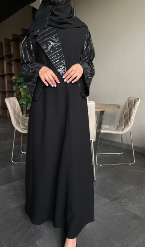 عبايات بيست – عباية عملية بتطريز على الكم باللون الاسود