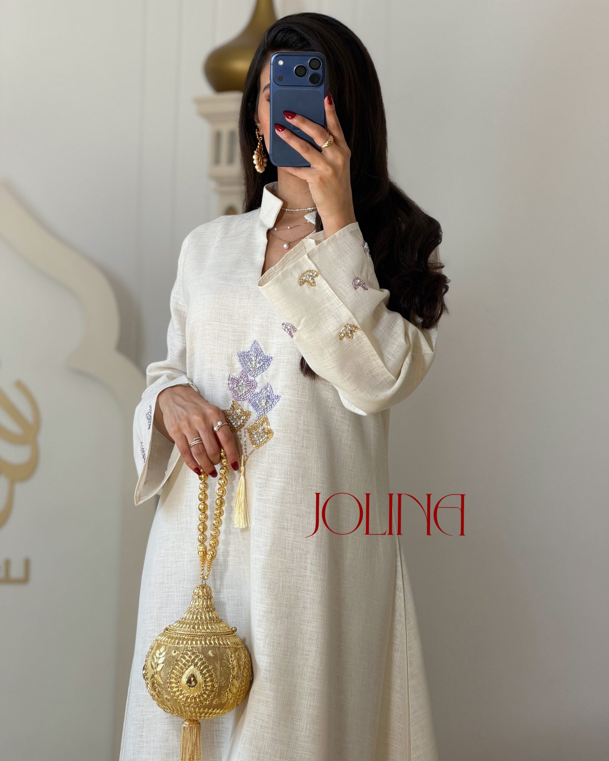 جولينا – جلابيه اوف وايت بتطريز ناعم