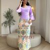 جولينا – طقم بيج أنيق بتصميم ناعم وتنورة بليسيه