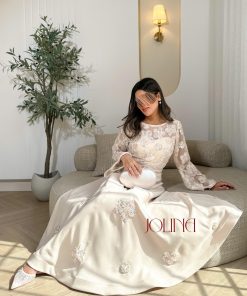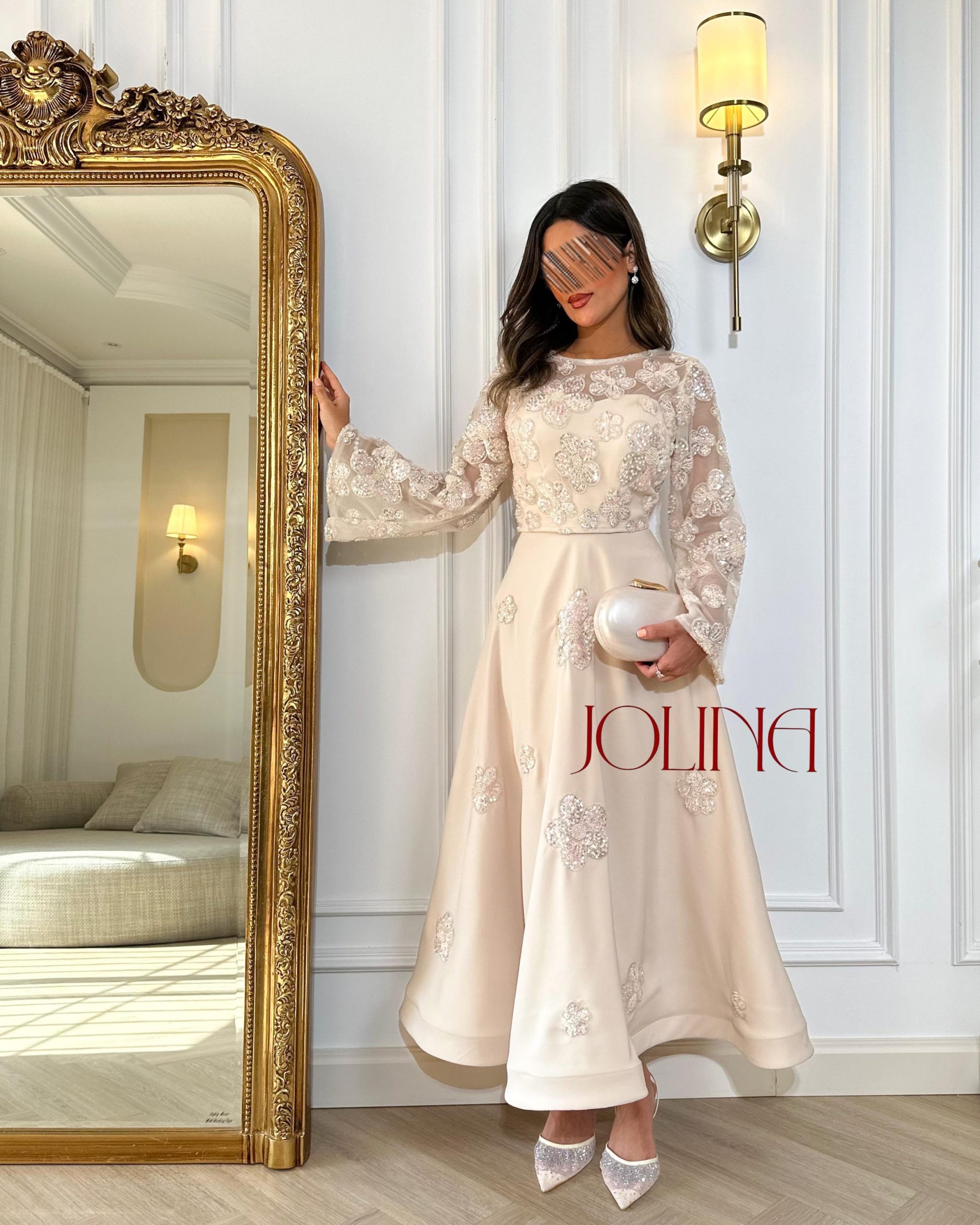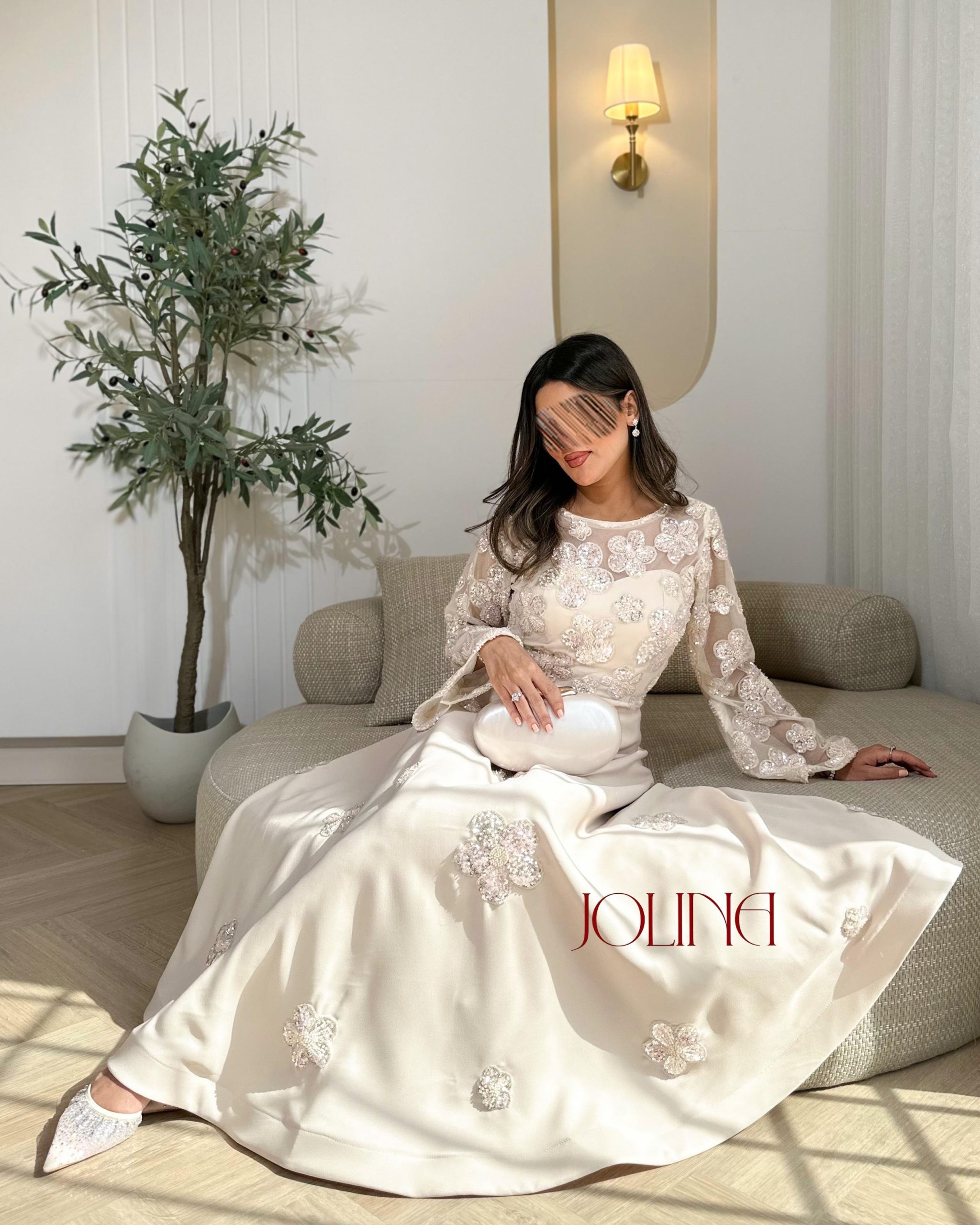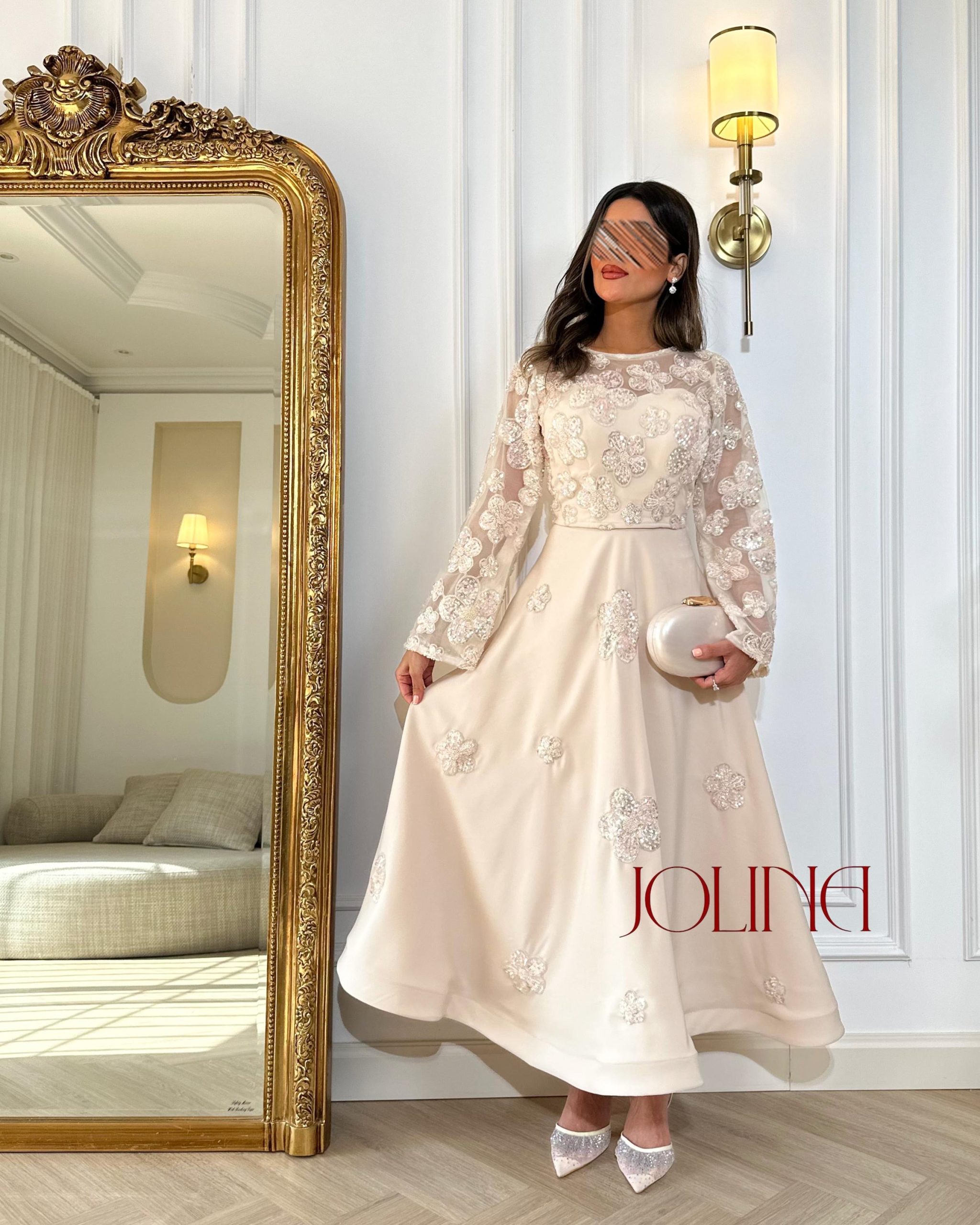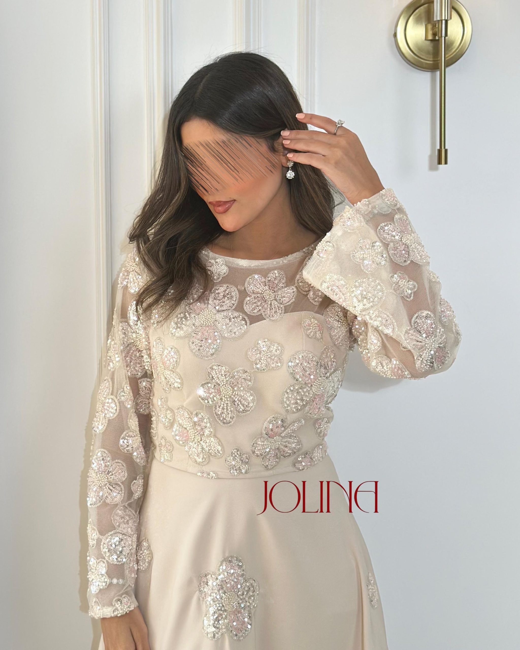 جولينا – طقم اوف وايت باكمام طويلة وكرستال ناعم